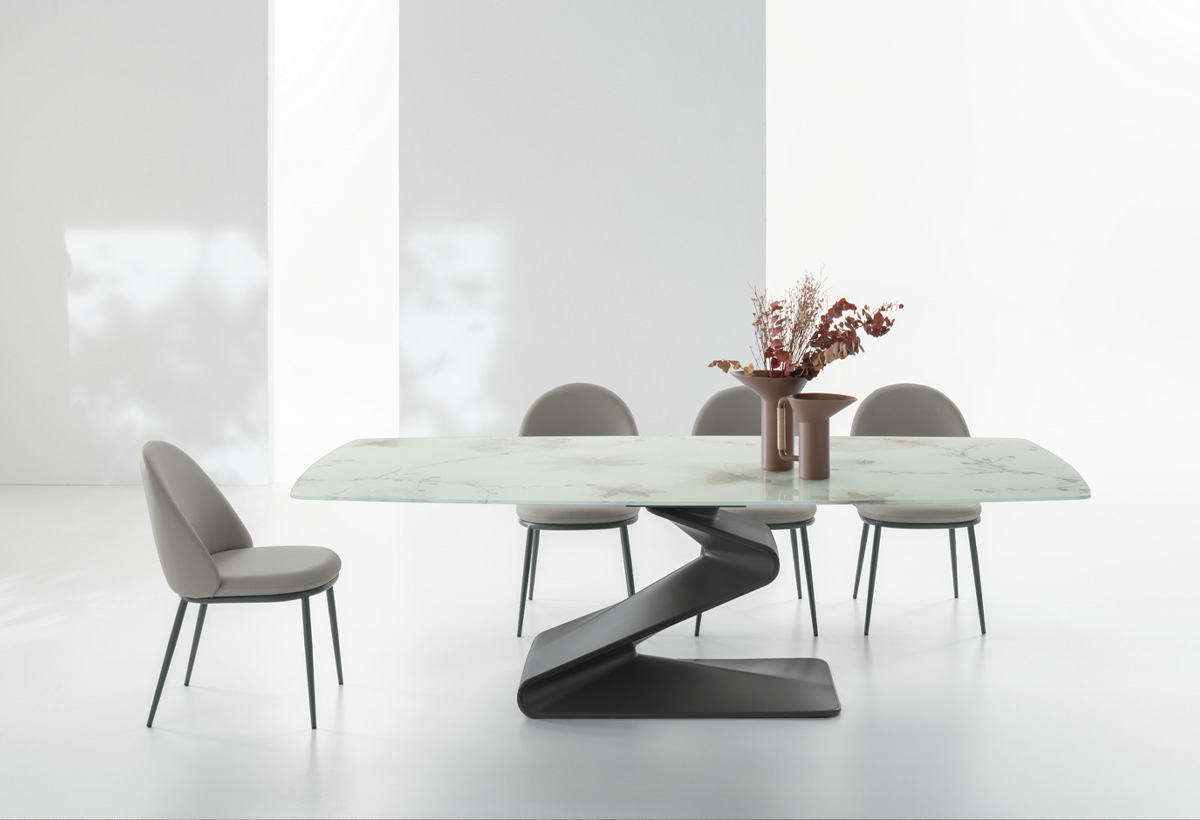 Tento moderní stůl kombinuje elegantní design s pevnou konstrukcí a vytváří tak zařizovací prvek, který se stane absolutním protagonistou každé místnosti.