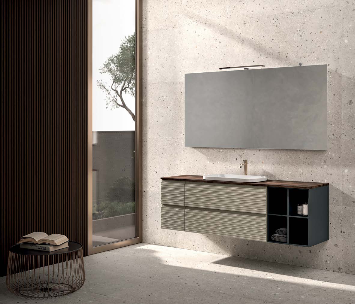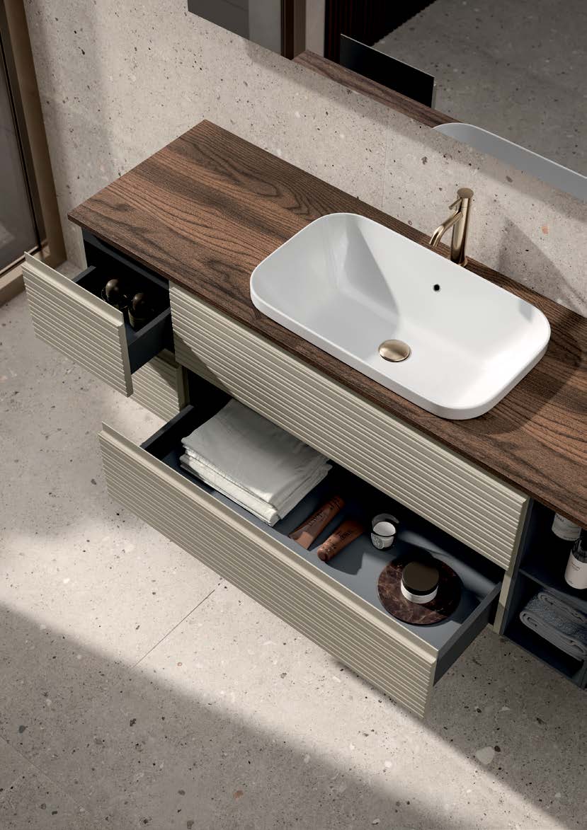 Saturno 114 je k dispozici v různých povrchových úpravách a konfiguracích, což vám umožní přizpůsobit si koupelnový nábytek svému stylu a potřebám. Elegantní a funkční volba pro vylepšení vašeho prostoru se 100% italským designem od Oltrebagno.
