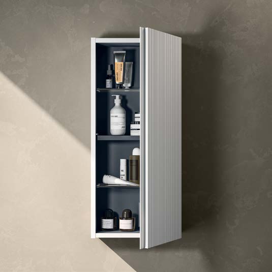 Saturno 117, dostupná v různých barvách a velikostech , je ideální pro ty, kteří hledají koupelnovou skříňku, která kombinuje estetiku a praktičnost a zaručuje odolnost a každodenní pohodlí.