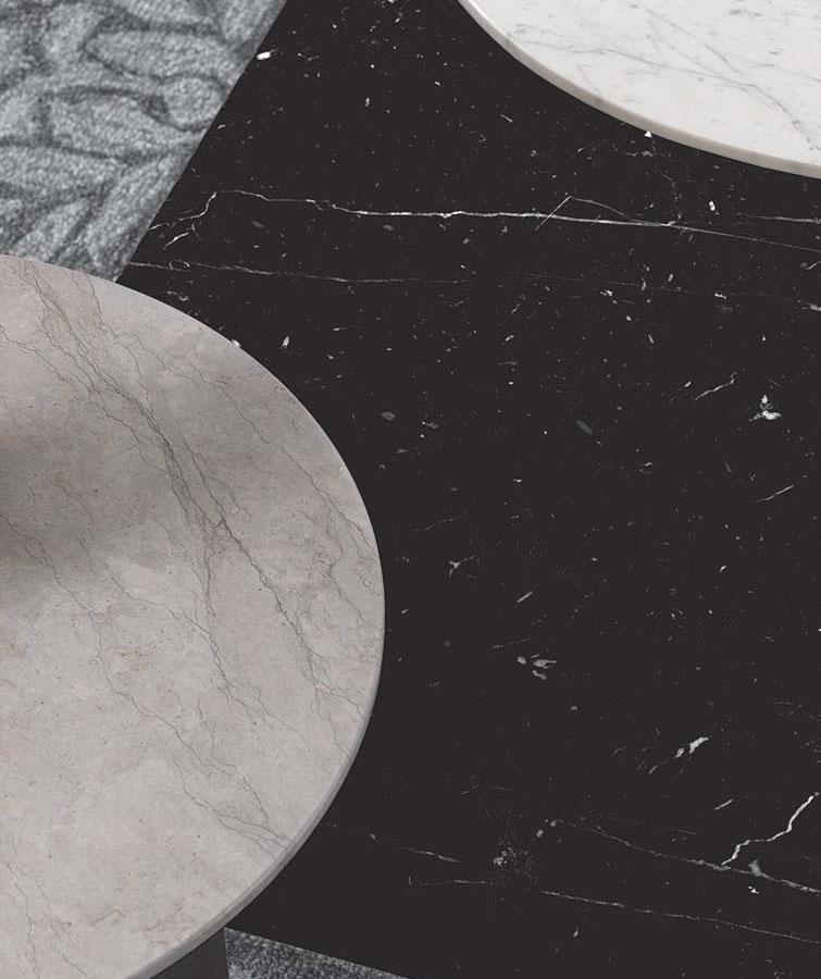 Tento konferenční stolek kombinuje modernitu industriálního designu se sofistikovaností mramoru, díky čemuž je ideální do moderních prostředí, jako jsou obývací pokoje a kanceláře.
