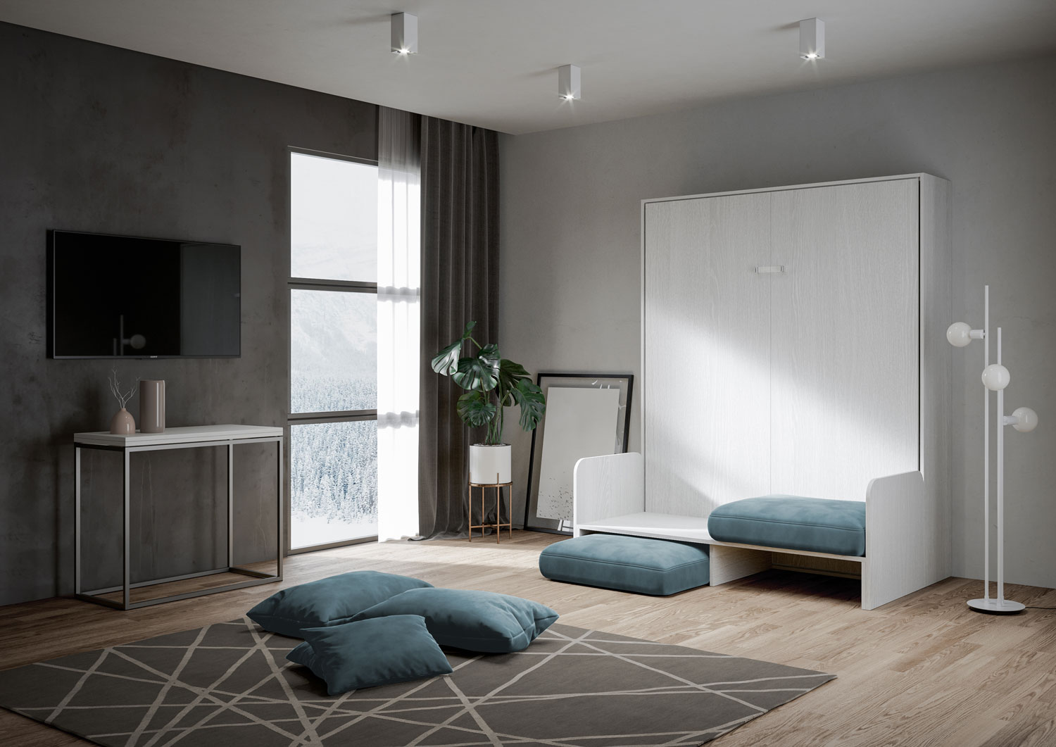 | Materiál | Dvoulůžko Kentaro s výklopnou stěnou o šířce 160 cm je originální nápad, který díky přidání pohovky promění obývací prostor v pár jednoduchých krocích. Perfektní řešení pro garsonky a malé prostory, kde je potřeba využít každý centimetr prostoru. |