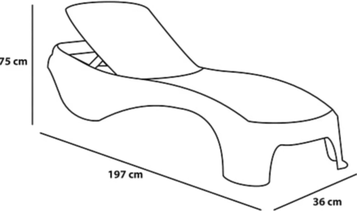 Měří 197x74x36 cm a má 4poziční nastavitelné opěradlo, takže se dokonale přizpůsobí různým potřebám relaxace, od ležící polohy až po vzpřímenější polohu.