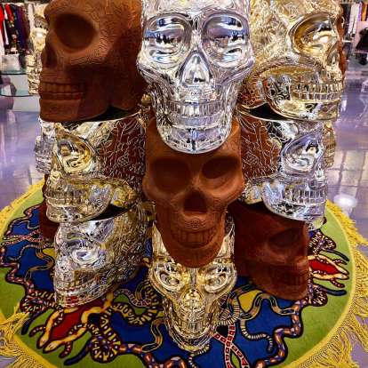 Mexiko, navržené studiem Studio Job, je designový objekt připomínající lebku s grafickým vzorem na povrchu, který slouží zároveň jako stolička i konferenční stolek. Mexiko, připomínající tradiční malované lebky své stejnojmenné země, je rozmarným odkazem na cyklickou povahu naší přítomnosti na Zemi, s cílem zažehnat smrt a oslavit život. Díky kovové povrchové úpravě je vhodné pouze pro vnitřní použití.