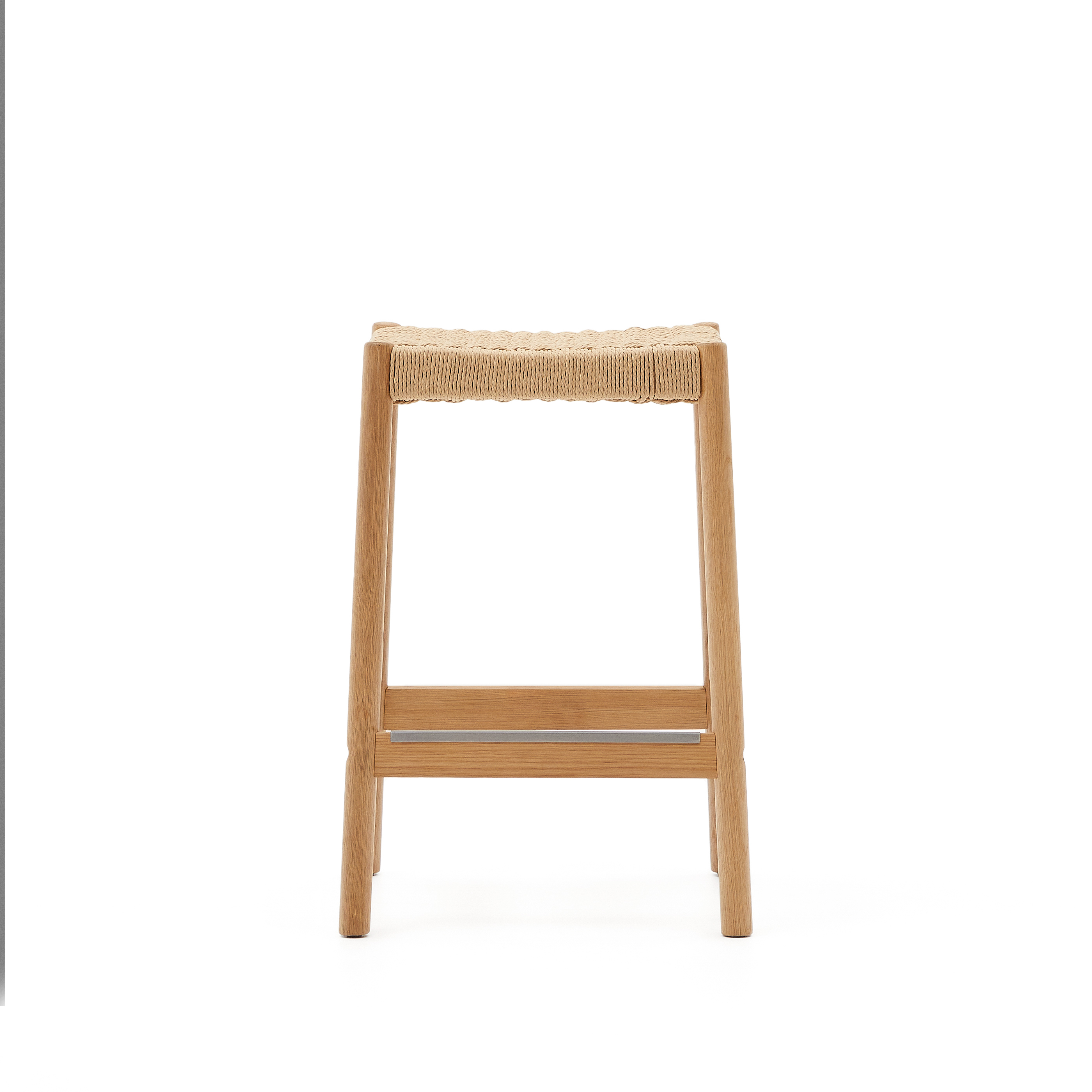 Stolička Yalia z masivního dubového dřeva s přírodní povrchovou úpravou a lanem, výška 65 cm, FSC 100%