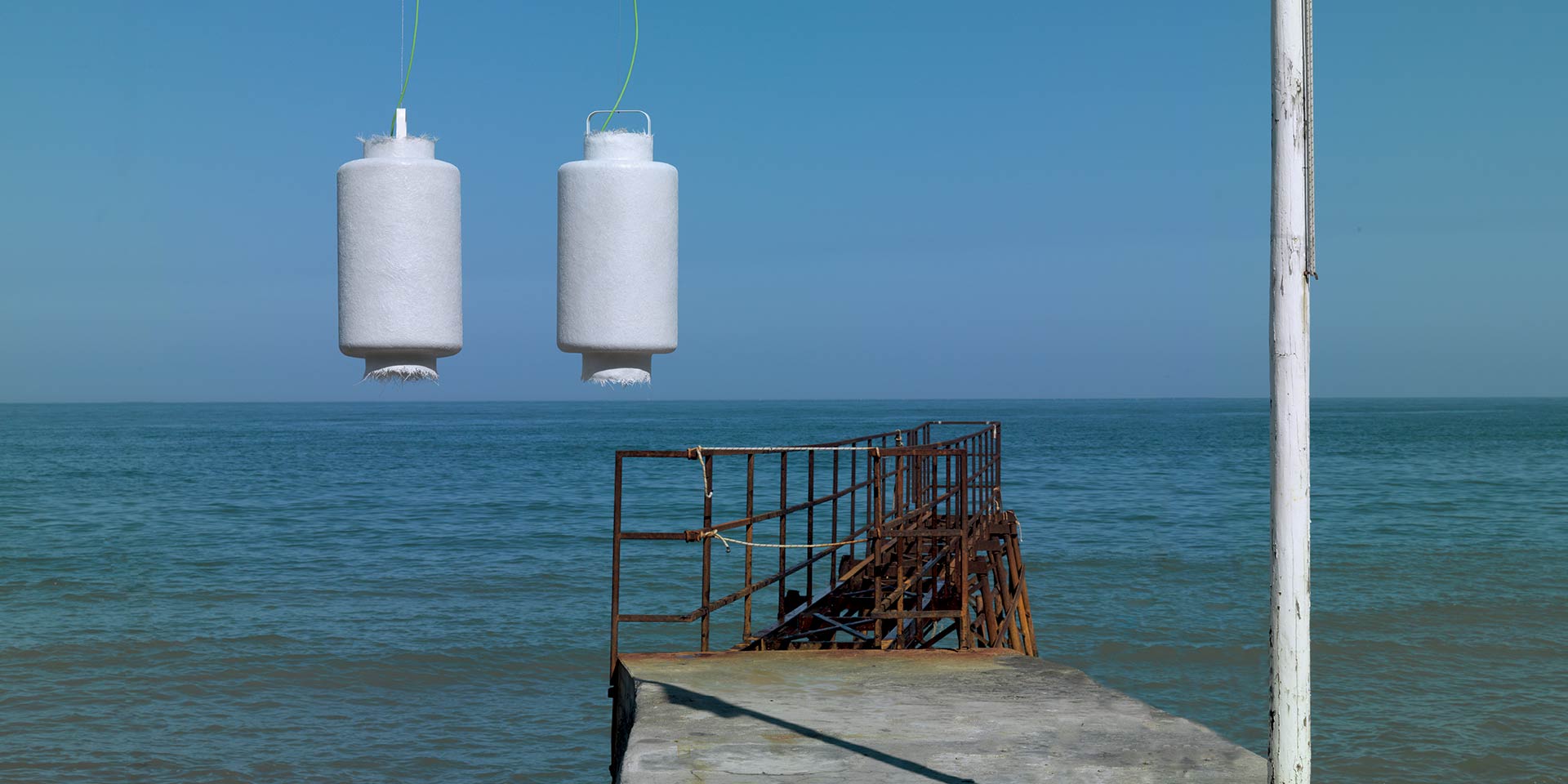 Kimono má bílé sklolaminátové tělo, 2m dlouhé ocelové závěsné lanko, 2/5m dlouhý průhledný/zelený elektrický kabel a je k dispozici v následujících velikostech: