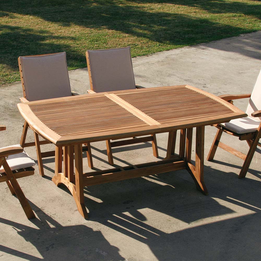 Tento stůl, vyrobený z pravého indonéského teakového dřeva, vyzařuje vnitřní krásu a pevnost, kterou může nabídnout pouze masivní dřevo, a vytváří tak vytříbenou a příjemnou atmosféru pro vaše venkovní příležitosti.
