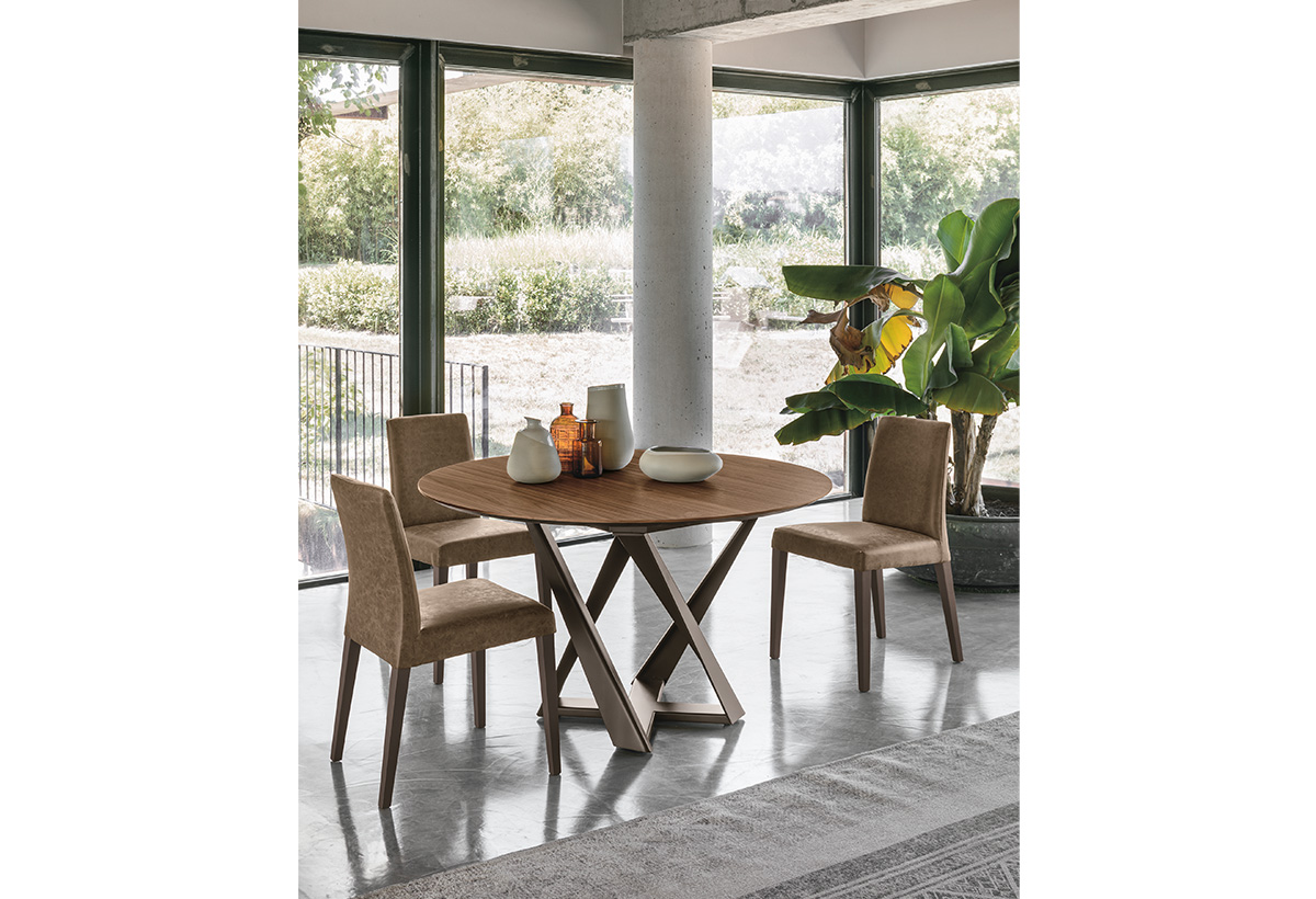 Pevný kulatý stůl „Cronos Wood“ od Target Point je kus nábytku, který kombinuje robustnost a moderní design.