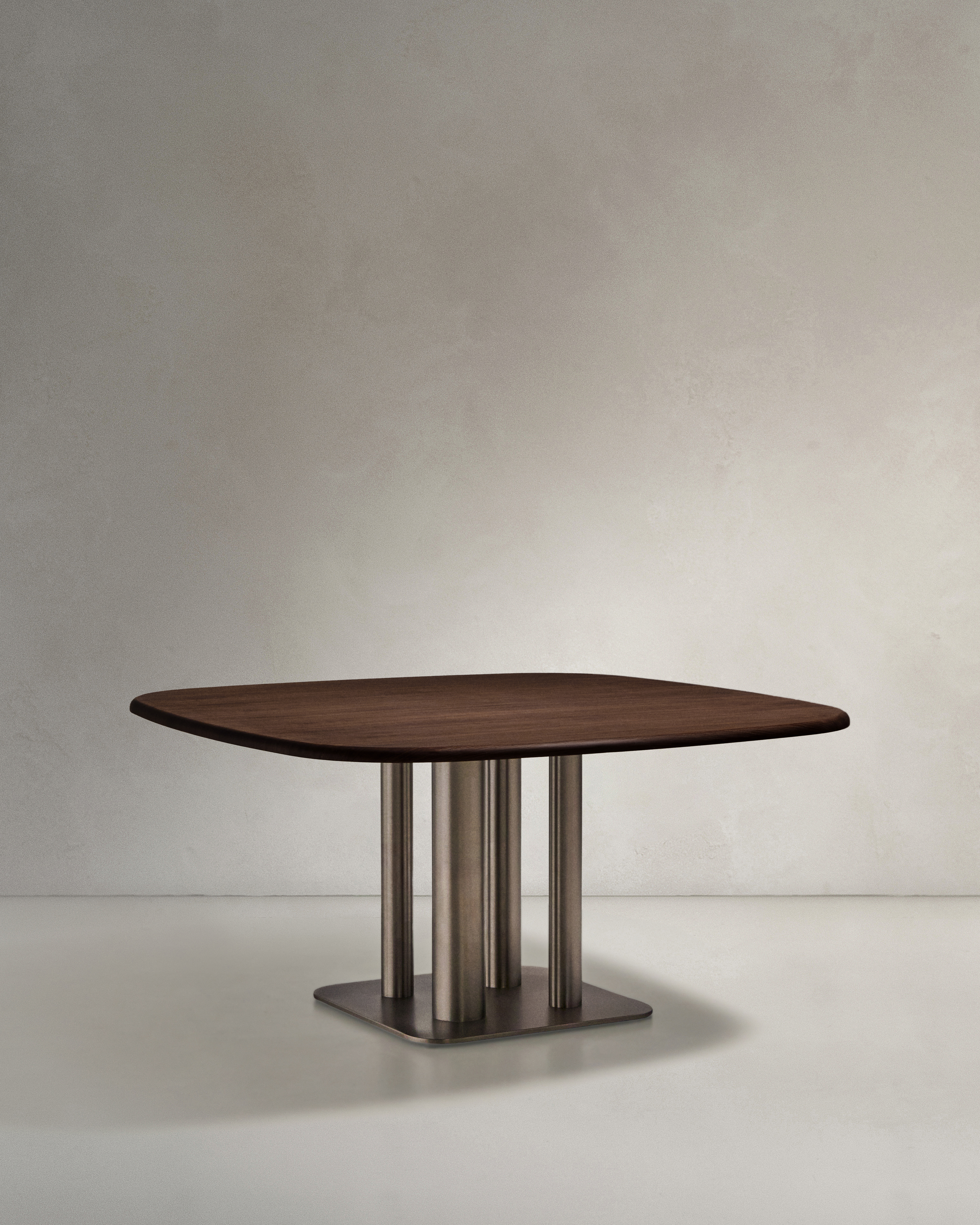 Stůl Melvar vzdává hold estetice poloviny minulého století, interpretované v moderním duchu, kde je elegance vyjádřena ušlechtilými materiály a sochařskými detaily. Deska stolu, vyrobená z 0,6mm ořechové dýhy se sofistikovanou tmavou povrchovou úpravou, vyzařuje teplo a eleganci a zve vás k prožití zvláštních okamžiků. Dokonalé zakřivení dřeva, dosažené membránovým lisem, a polyuretanová povrchová úprava zajišťují výjimečnou pevnost a odolnost, což umožňuje, aby krása povrchu vydržela dlouho. Ikonický charakter tohoto kusu je umocněn nohami z nerezové oceli, které jsou navrženy v různých průměrech a mají sofistikovaný kartáčovaný efekt, který snižuje viditelnost otisků prstů. Tento kontrast materiálů a objemů vytváří jedinečnou sochařskou siluetu, která dokáže proměnit jakoukoli jídelnu v moderní designový prostor, aniž by byla obětována nadčasová atmosféra, která definuje kolekci. Sada je doplněna nastavitelnou podstavnou lištou, která je navržena tak, aby se stůl přizpůsobil jakémukoli povrchu a zajistila maximální stabilitu. Tento stůl, vhodný až pro 4 osoby, se stane epicentrem setkání a oslav a kombinuje funkčnost a krásu v každém detailu.