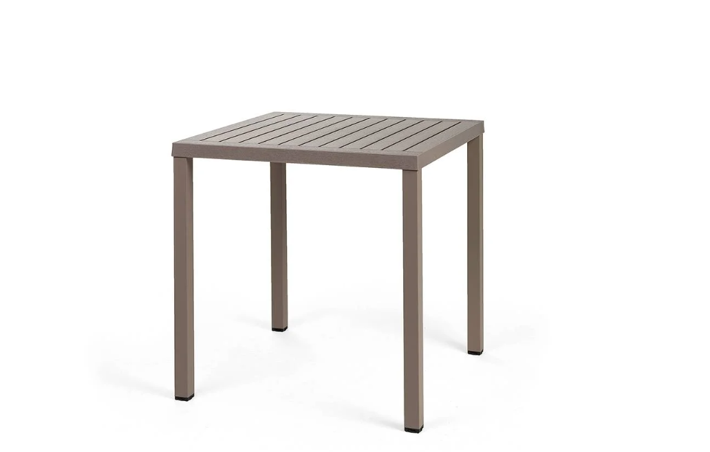 Nohy z lakovaného hliníku. Matný povrch. Vybaveno nastavitelnými nožičkami. Recyklovatelná pryskyřice.