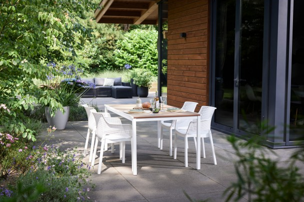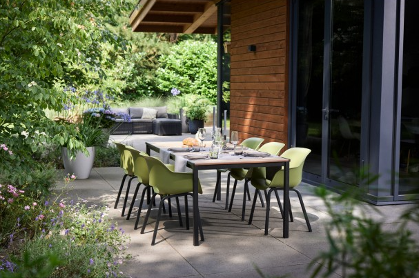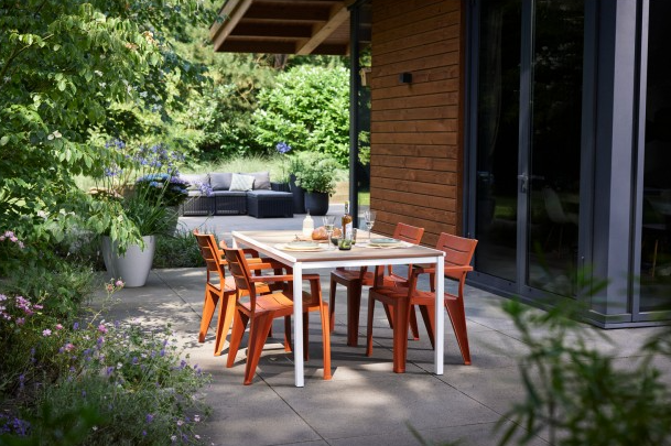 Stůl je robustní, stabilní a pojme až 6 osob, takže je ideální pro středně velké venkovní prostory, jako jsou zahrady, terasy a verandy.