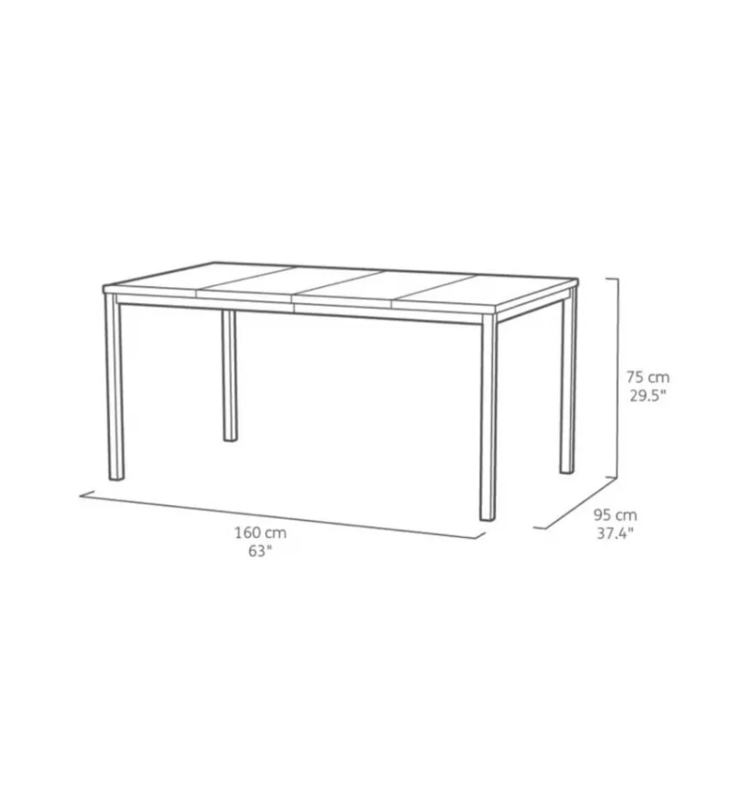 Zahradní stůl Porto 160 od značky Keter má rozměry 159x95x75 cm a kombinuje lakovaný kovový rám (k dispozici v grafitové nebo bílé barvě) s deskou s imitací dřeva z odolného polypropylenu.