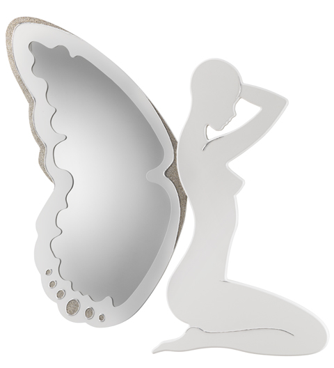 zrcadlo cm 113x118 (zrcadlo cm 38x90) rám z MDF tvarovaný a lakovaný ve slonovinové barvě s třpytkami a pryskyřičnými aplikacemi