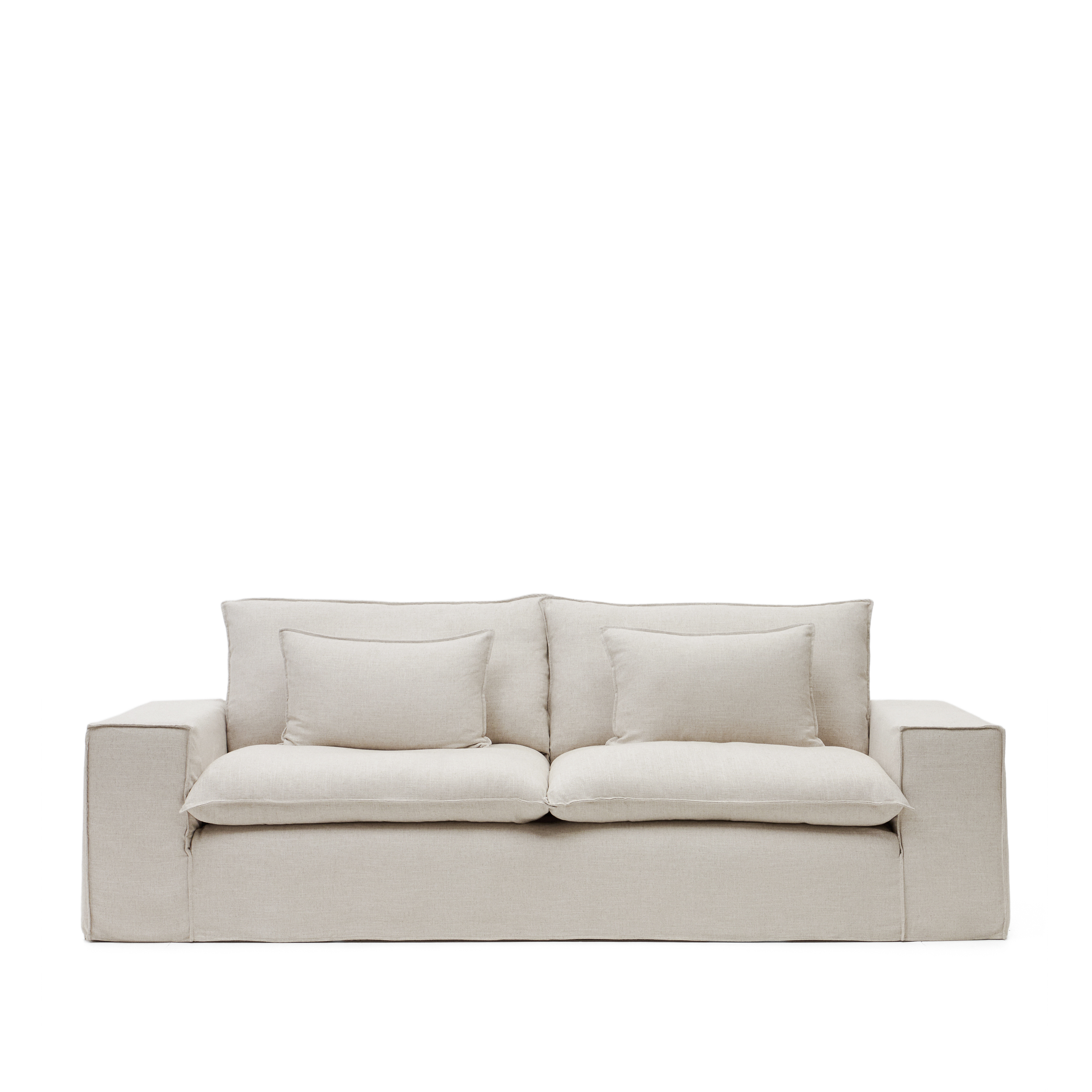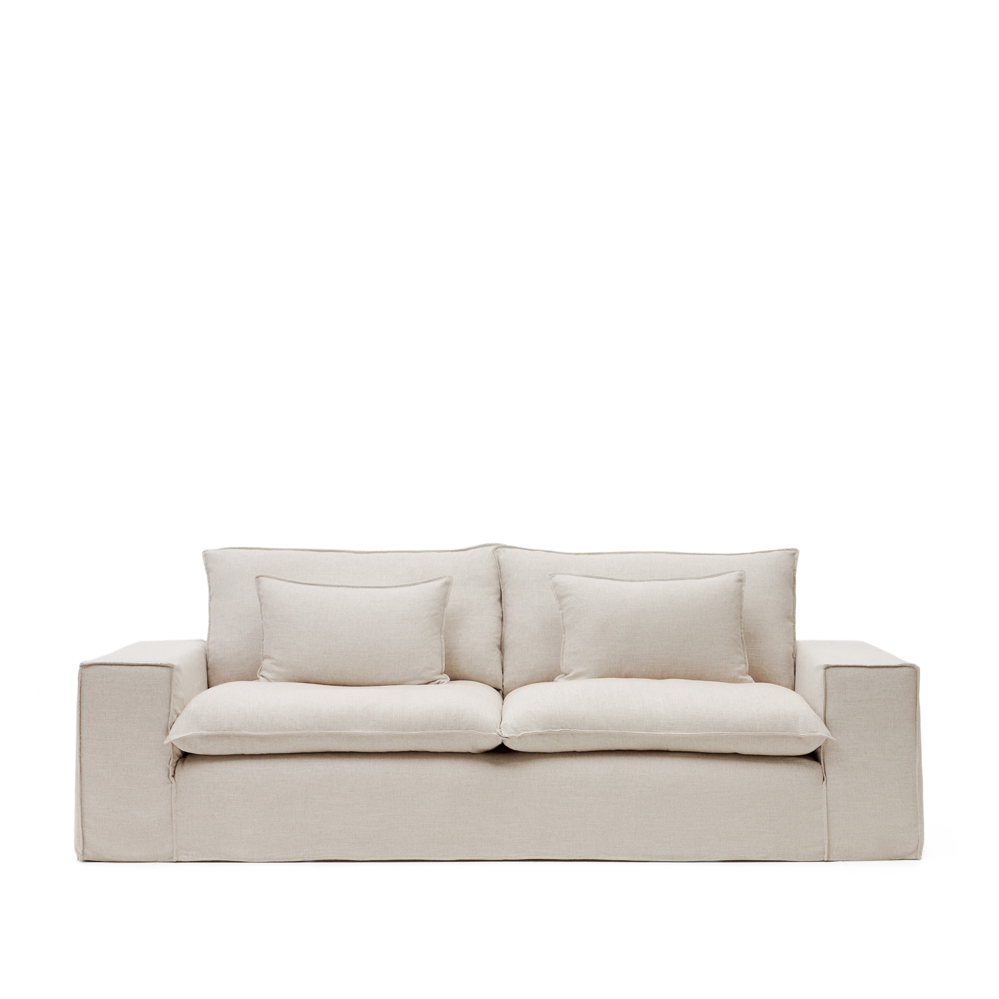 Tato třímístná pohovka v sobě spojuje měkkost, design a pohodlí v kusu nábytku určeném pro relaxaci v naprostém pohodlí. Potah je čalouněný příjemnou lněnou látkou s béžovou povrchovou úpravou a je kompletně odnímatelný, což usnadňuje čištění a údržbu. Součástí je odnímatelný potah a dekorativní polštáře, které dotvářejí příjemný a uvolněný estetický vzhled sady. Pro zachování vzhledu a textury a pro prevenci srážení se doporučuje profesionální čištění. Vnitřek je navržen tak, aby nabízel pocit útulnosti díky 100% silikonově ošetřenému mikrovláknu v sedáku, opěradle a polštářích, což zajišťuje extra měkký a hebký pocit. Jádro sedáku kombinuje různé hustoty – 30 kg/m³ v základní vrstvě a 40 kg/m³ v horní vrstvě – pro zajištění dokonalé rovnováhy mezi pohodlím a pevností. Vnitřní látka je navíc vyrobena z 50% polyesteru a 50% bavlny v kombinaci se 100% silikonově ošetřeným panenským mikrovláknem pro obzvláště měkký povrch. Konstrukce zahrnuje klikatý kovový pružinový systém v sedáku pro pevnost a odolnost a 50mm elastické popruhy v opěradle pro větší pohodlí. Tato pohovka, vyrobená lokálně ve Španělsku, snižuje emise CO₂ spojené s dopravou. Útulný, pohodlný a praktický kus nábytku, který promění jakýkoli prostor v místo, kam se budete chtít vracet znovu a znovu.