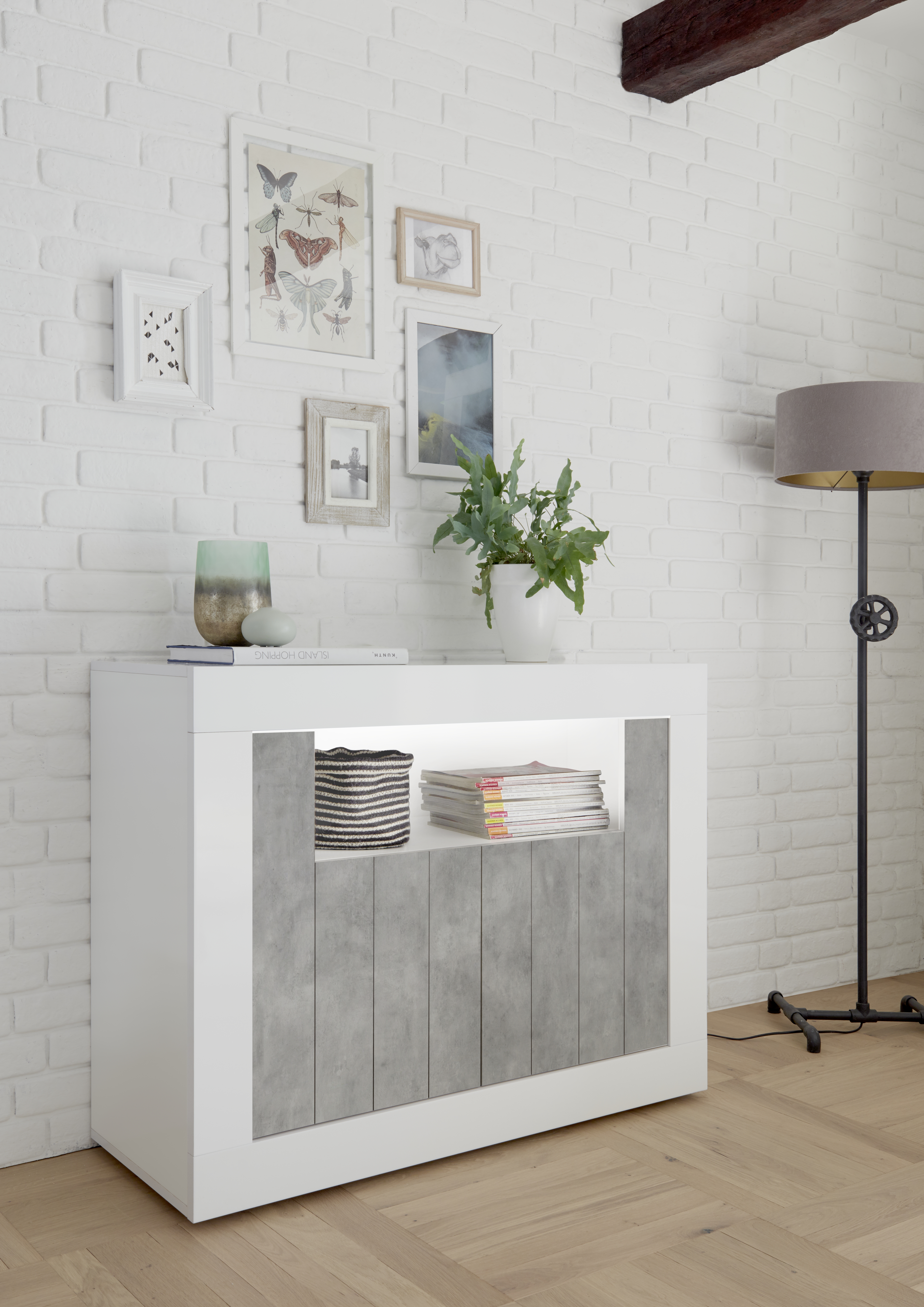 | Dokončit | Lesklá lakovaná bílá / Cement |