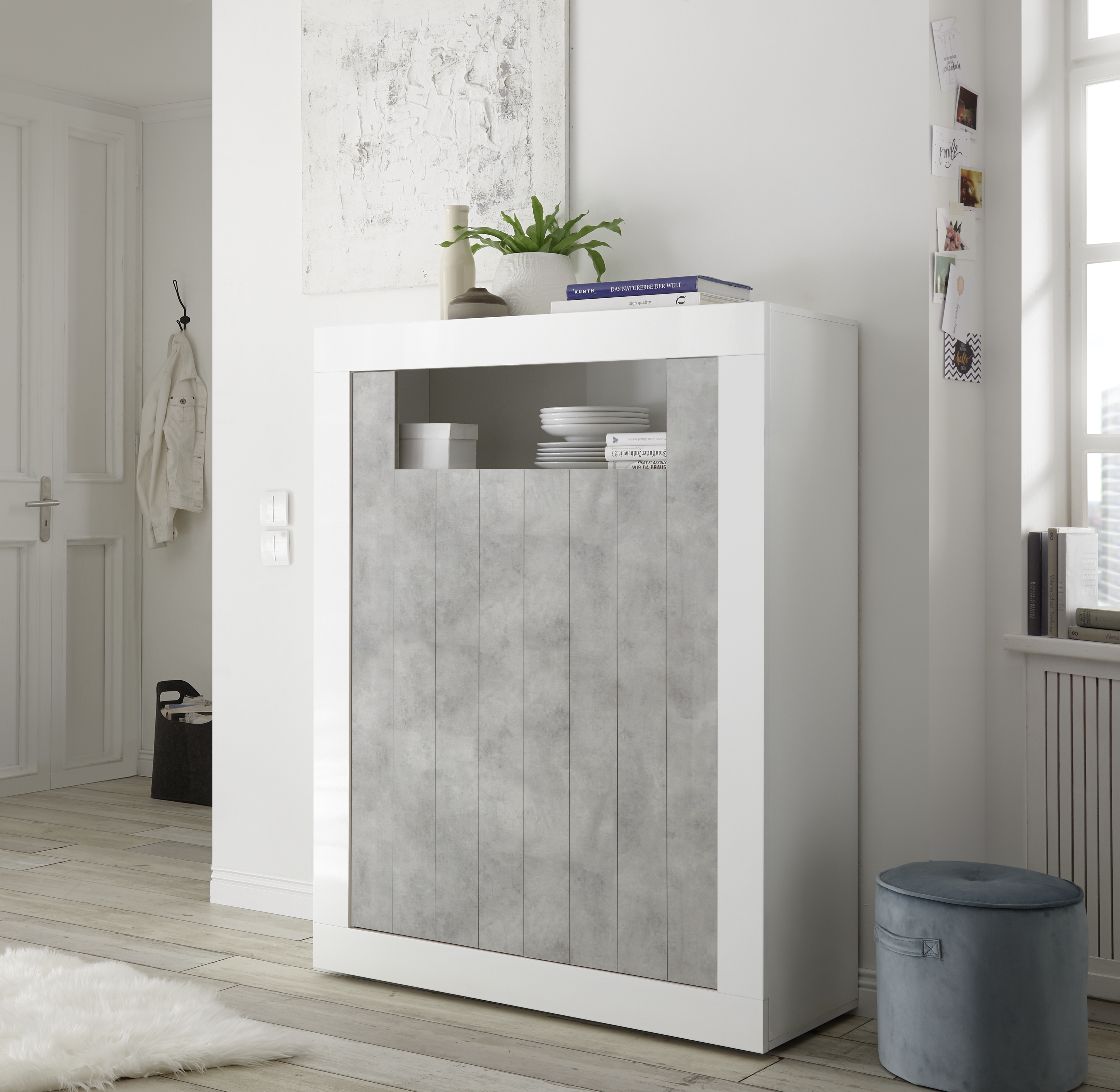 | Dokončit | Lesklá lakovaná bílá / Cement |