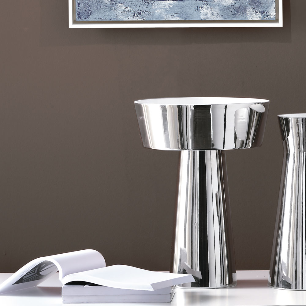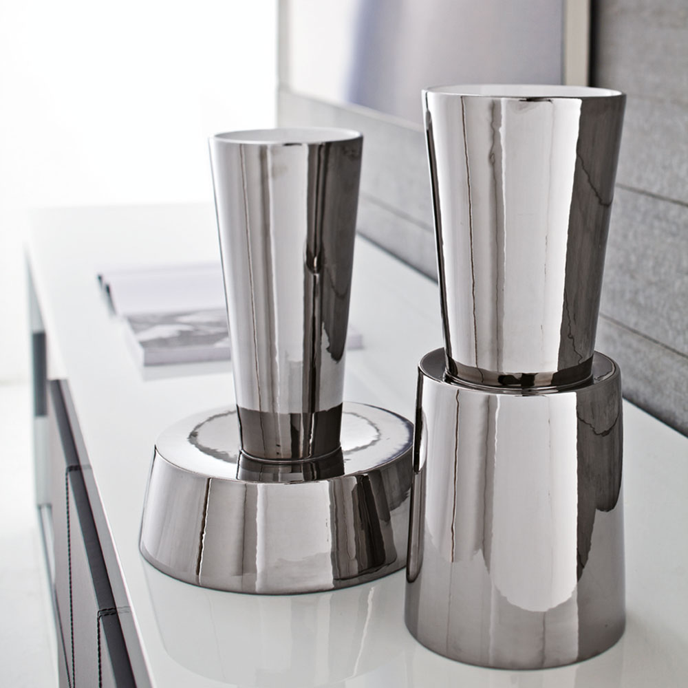 Keramické vázy glazované v bílé, černé nebo platinové barvě.