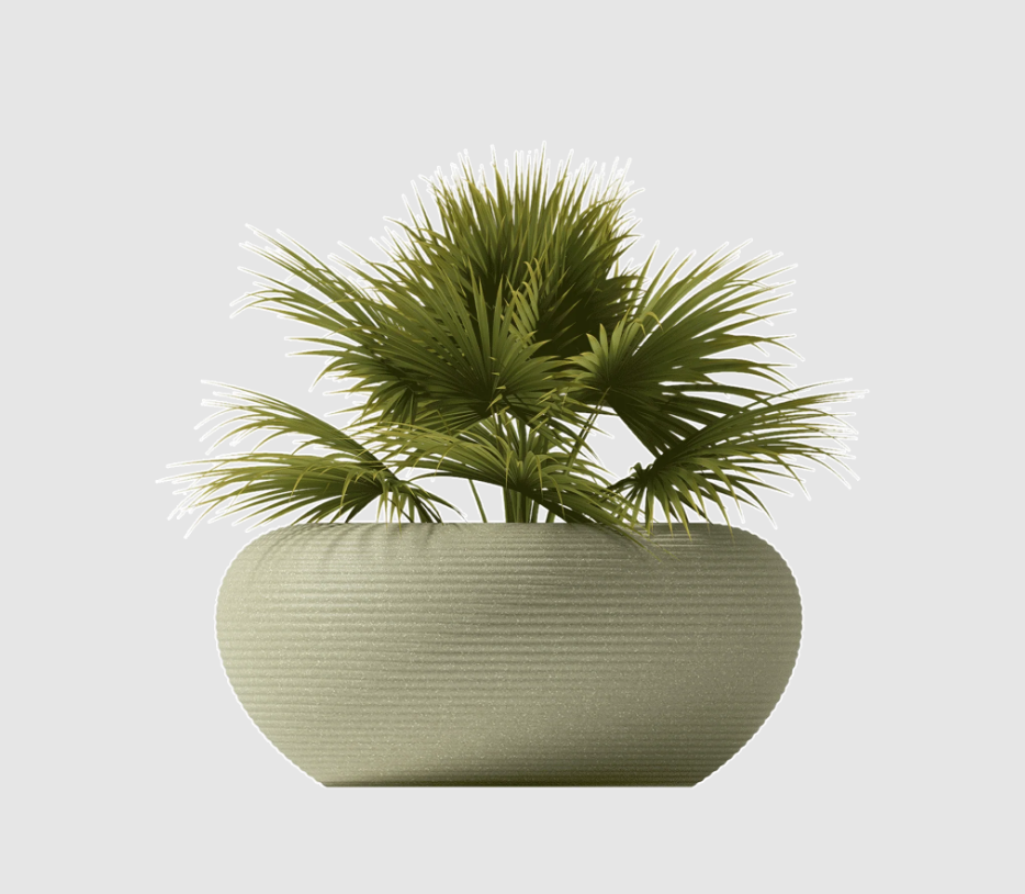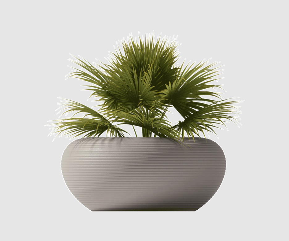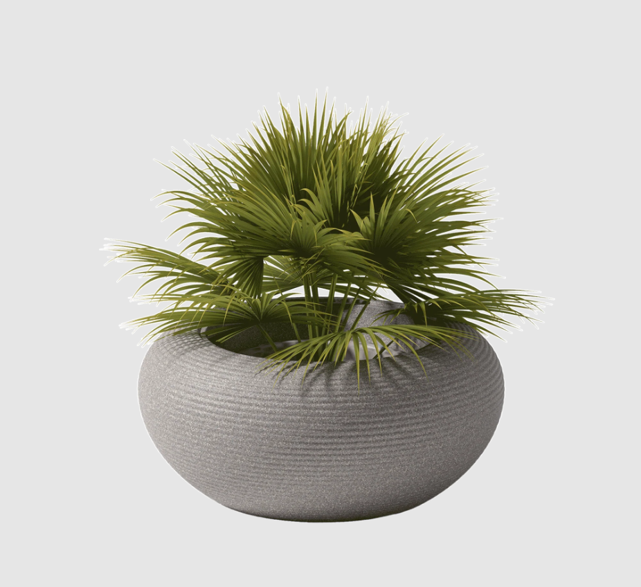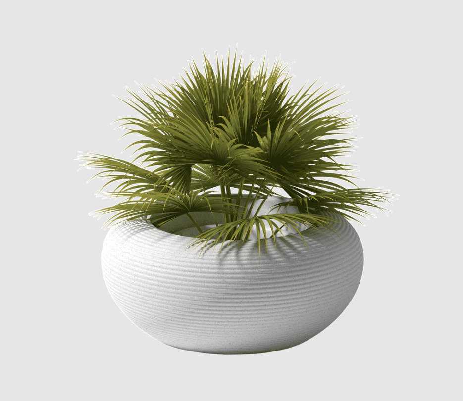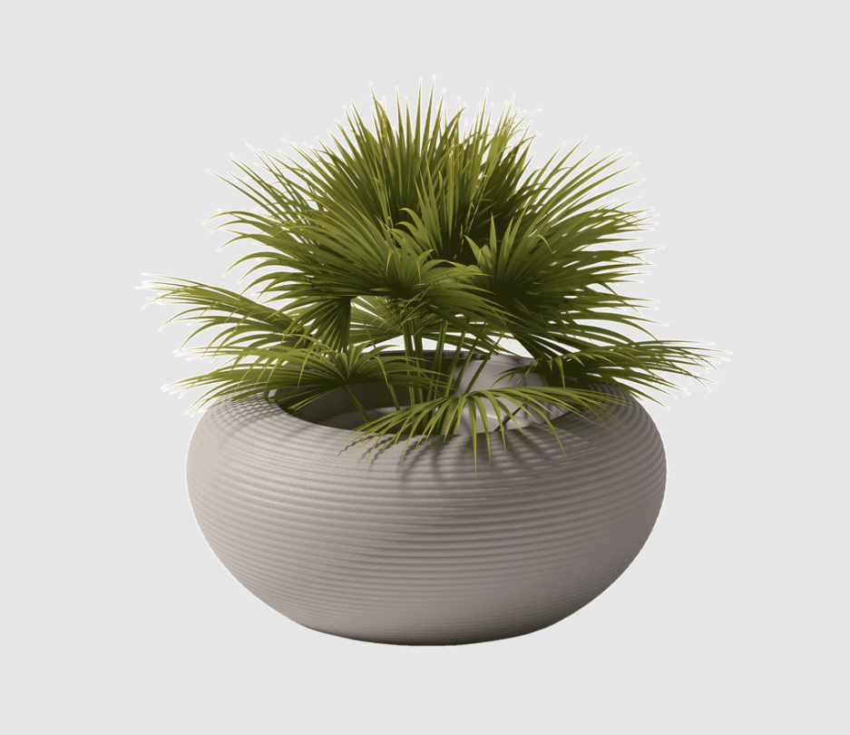 Nami je kulatý květináč vyrobený z recyklovatelného polyethylenu.
