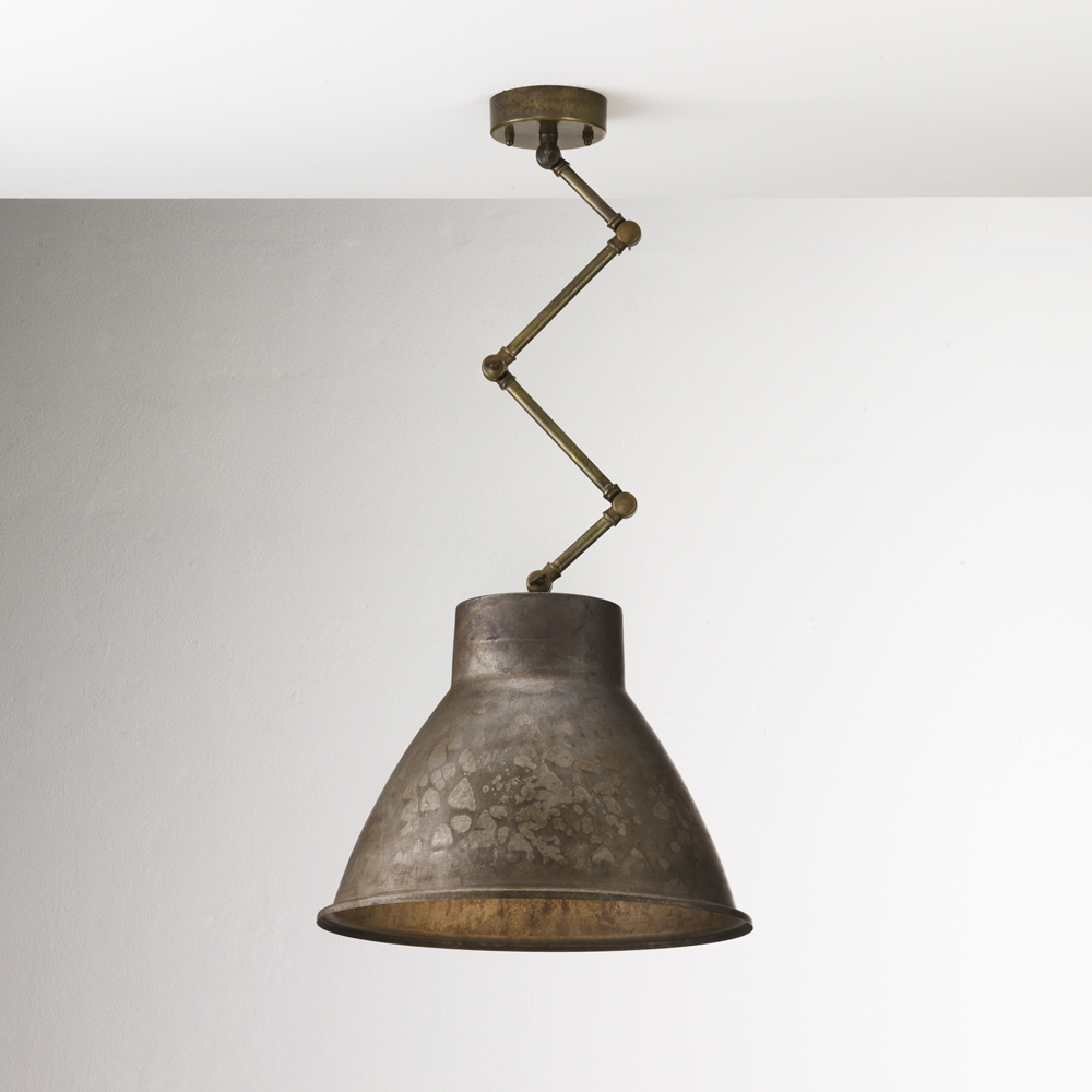 Kolekce Loft se skládá ze závěsných lamp, nástěnných lamp, stolní lampy a stojací lampy, všechny v železné povrchové úpravě s litým mosazným kloubem.