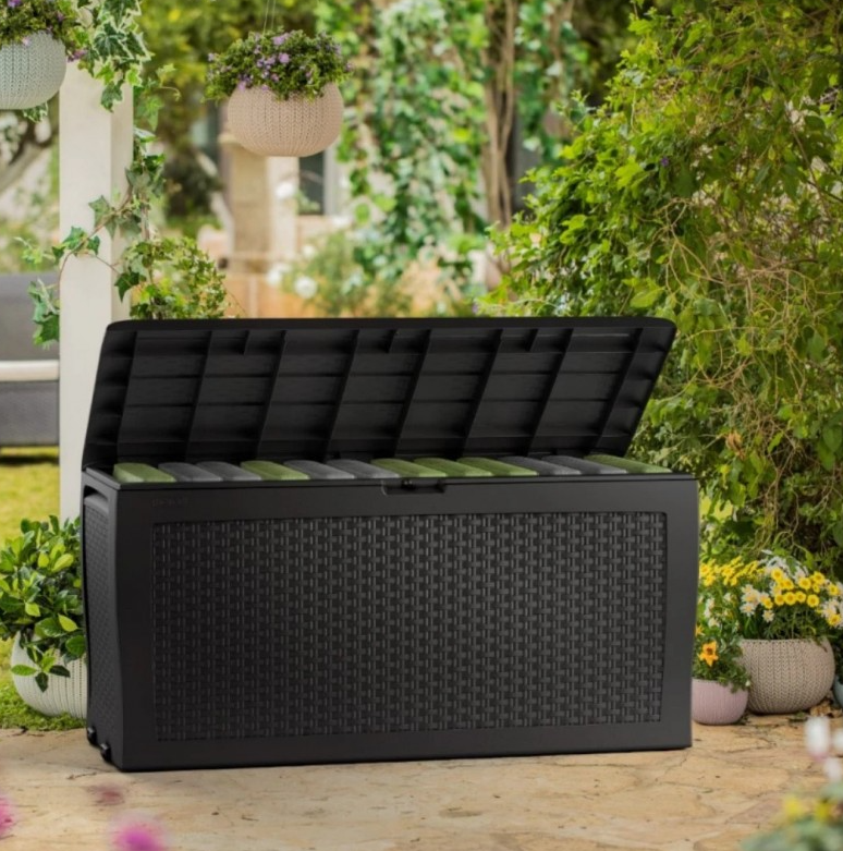 S objemem 270 litrů nabízí ideální prostor pro uložení polštářů, zahradního příslušenství, her nebo nářadí, které tak vždy zůstanou suché a uklizené.