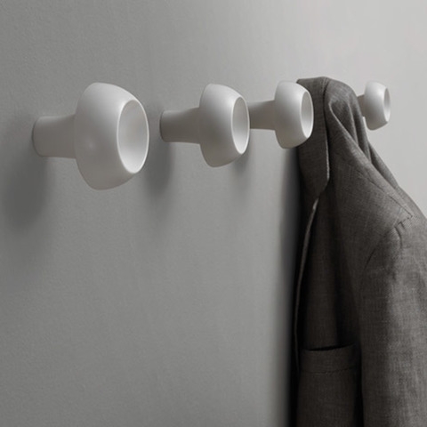 Nástěnný věšák na kabáty vyrobený z bílého technopolymeru s 1 otvorem ve střední části pro upevnění na zeď.