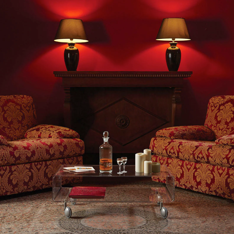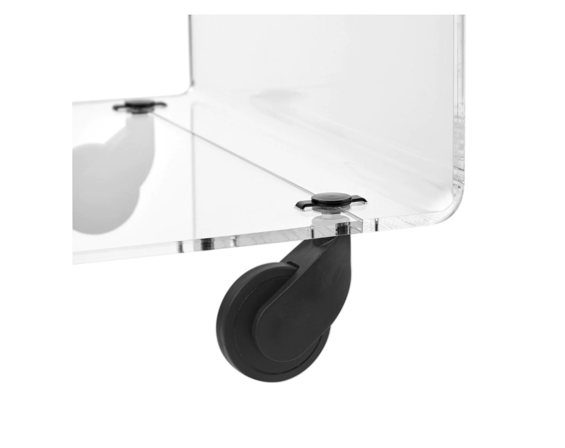 Víceúčelový vozík na kolečkách z průhledného metakrylátu (tloušťka 8 mm).