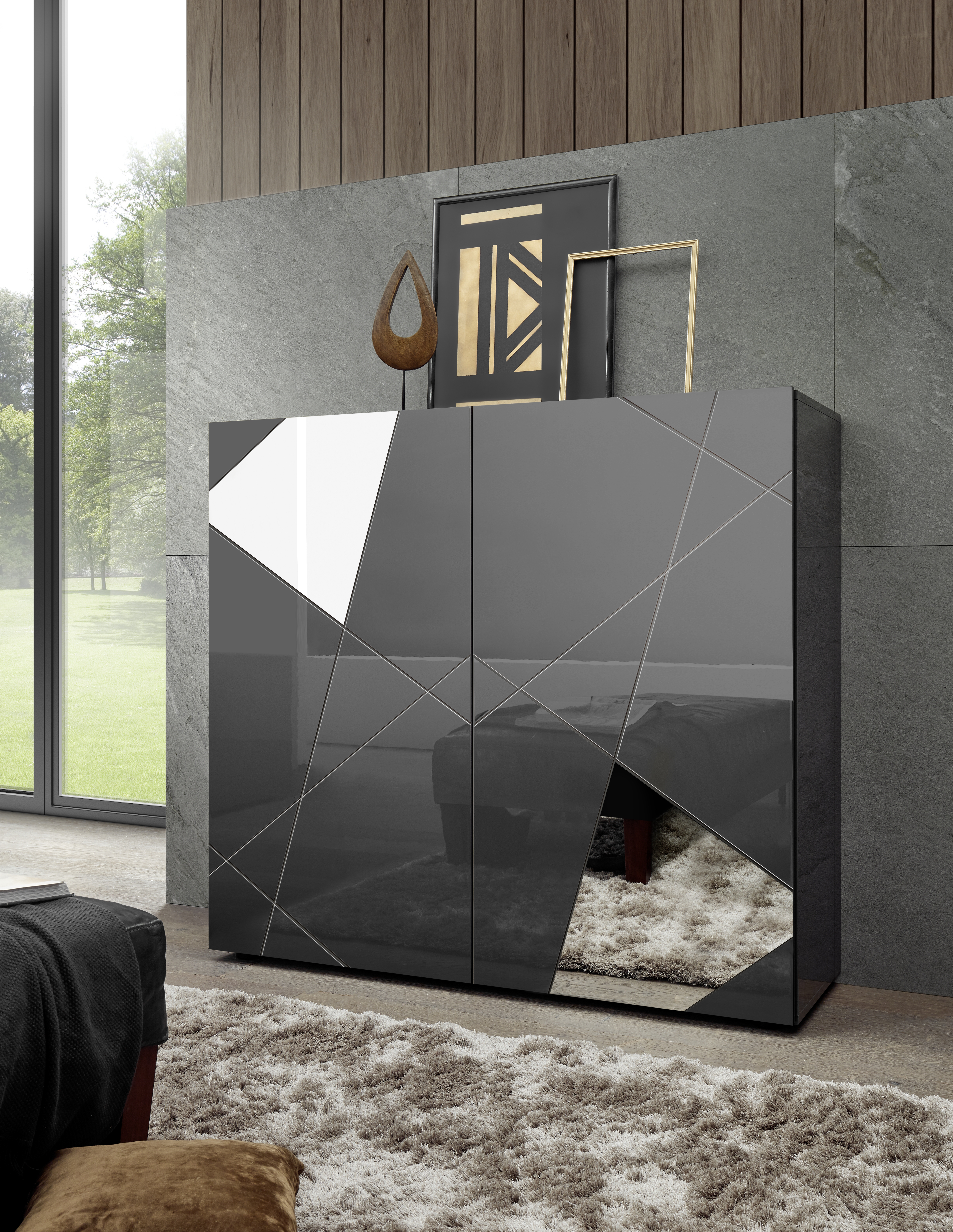 | Dokončit | Lesklá lakovaná šedá s potiskem a zrcadly |
