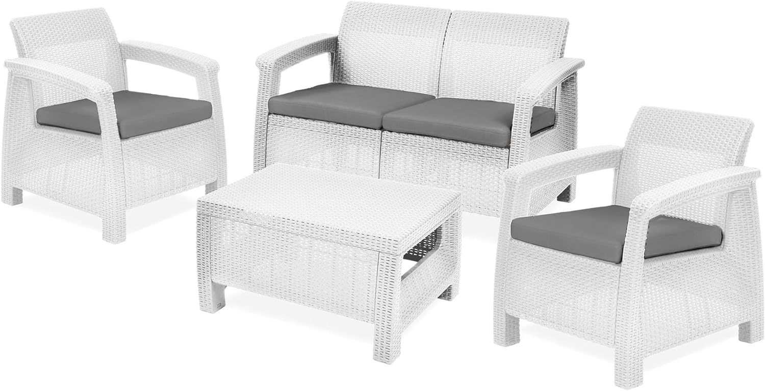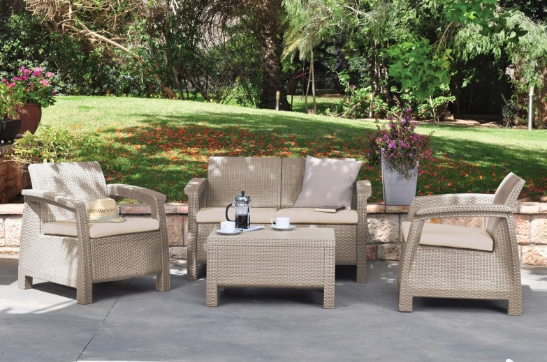 Sada Keter Corfu je elegantní zahradní sedací souprava vyrobená z polypropylenového ratanu odolného vůči povětrnostním vlivům a UV záření, který zaručuje dlouhou životnost a snadnou údržbu.