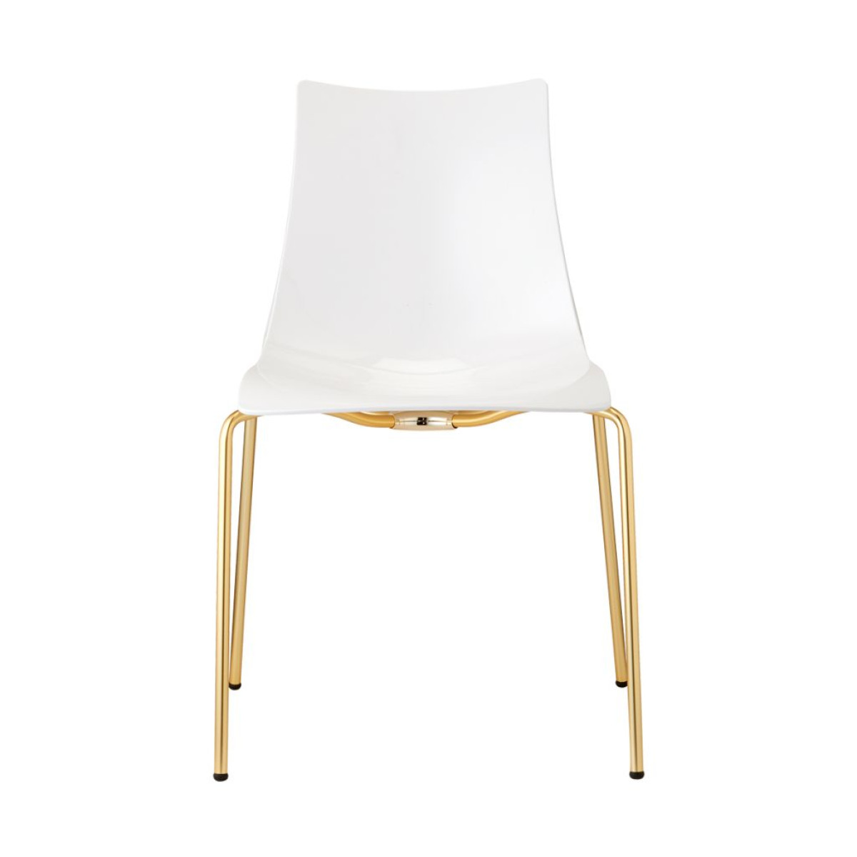 Židle má skořepinu vyrobenou z polykarbonátu, materiálu, který zaručuje průhlednost, odolnost a moderní vzhled.