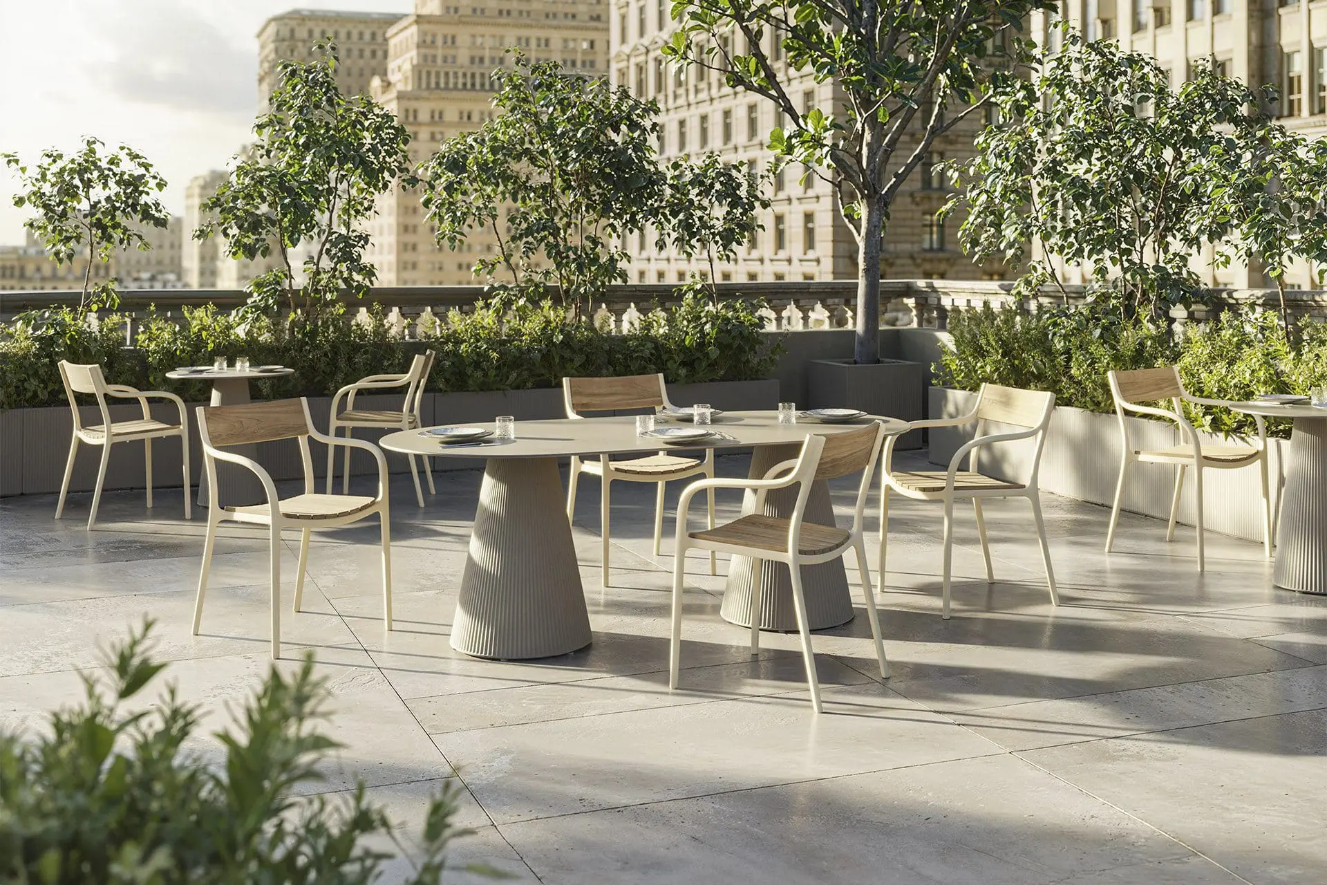 Madison Wood vždy nabízí jemnou rovnováhu mezi přirozeností a moderností a zve vás k prožití venkovních prostor se stejným komfortem jako v útulném obývacím pokoji. Židle, která se nesnaží být křiklavou protagonistkou: raději šeptá příběhy o poctivém designu, materiálech, které vzbuzují důvěru, a místech, která si můžete užít kdykoli během dne.