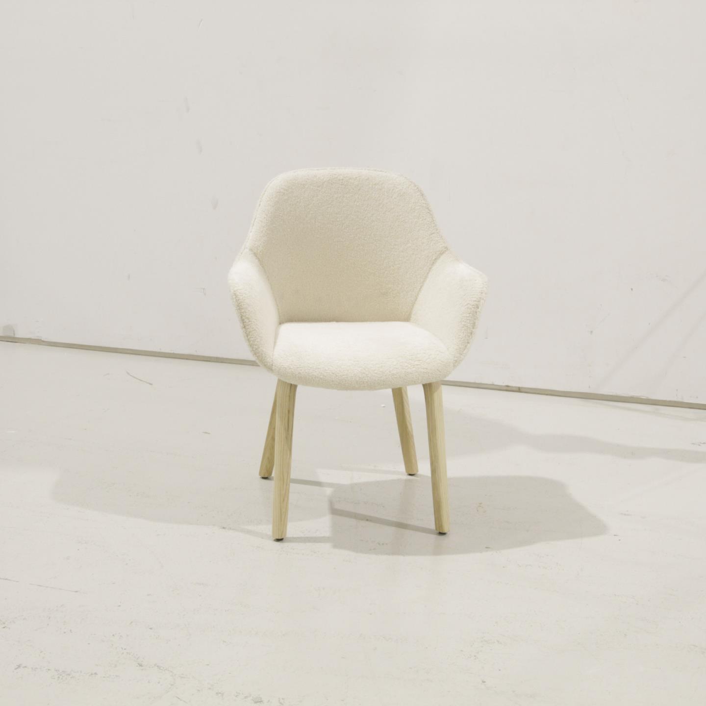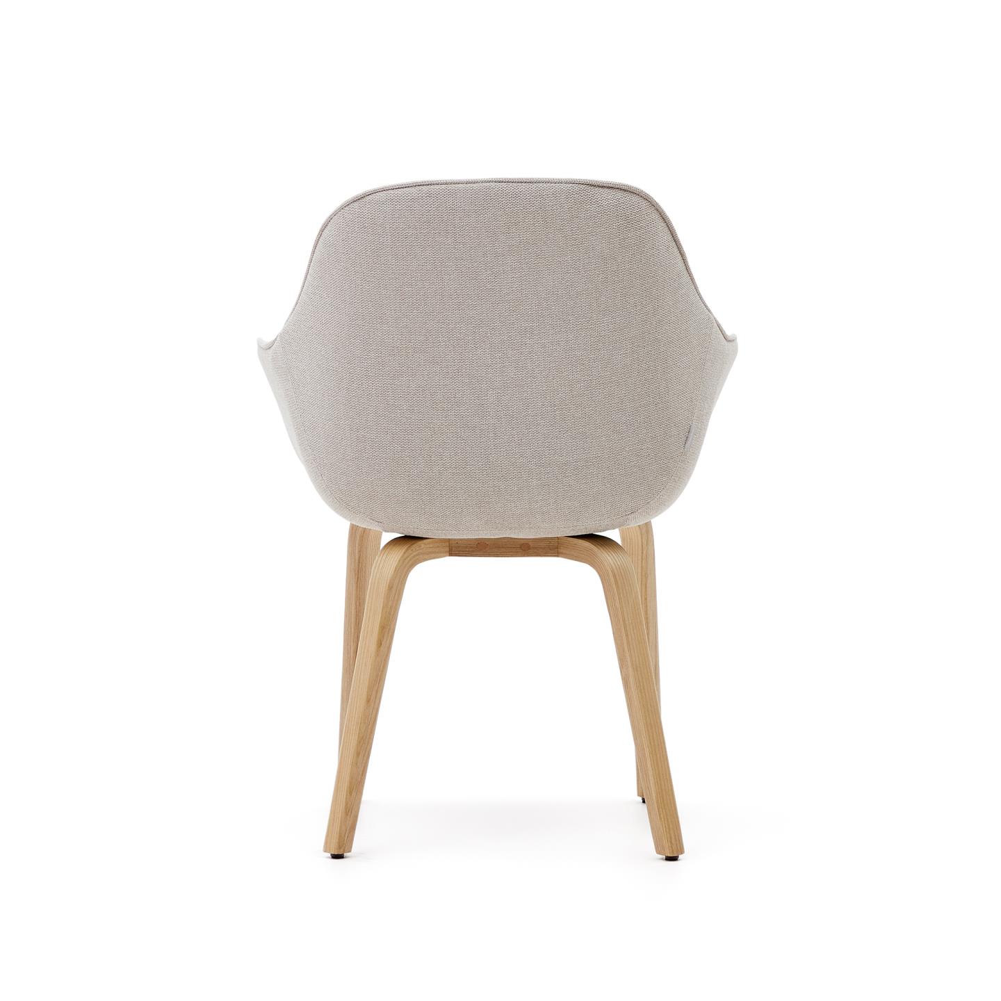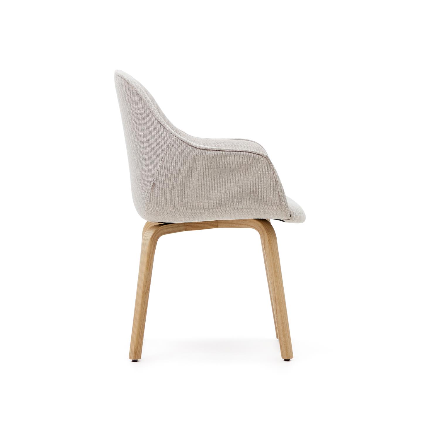 Židle Aleli v béžové žinylkové barvě s nohami z masivního jasanu a přírodní povrchovou úpravou