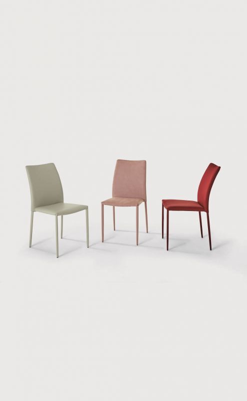 Židle Amy, celočalouněná včetně nohou, se dokonale přizpůsobí jakémukoli prostředí a stylu zařízení, od kuchyně až po jídelnu. Celá konstrukce, včetně nohou, je čalouněna prémiovou ekokůží nebo koženým vláknem a skládá se z masivního kovového rámu s polstrovaným sedákem a opěradlem. Tento elegantní a odolný produkt odráží všechny standardy kvality, které charakterizují skupinu Bontempi. Produkt plně přizpůsobitelný z hlediska čalouněných materiálů a barev.