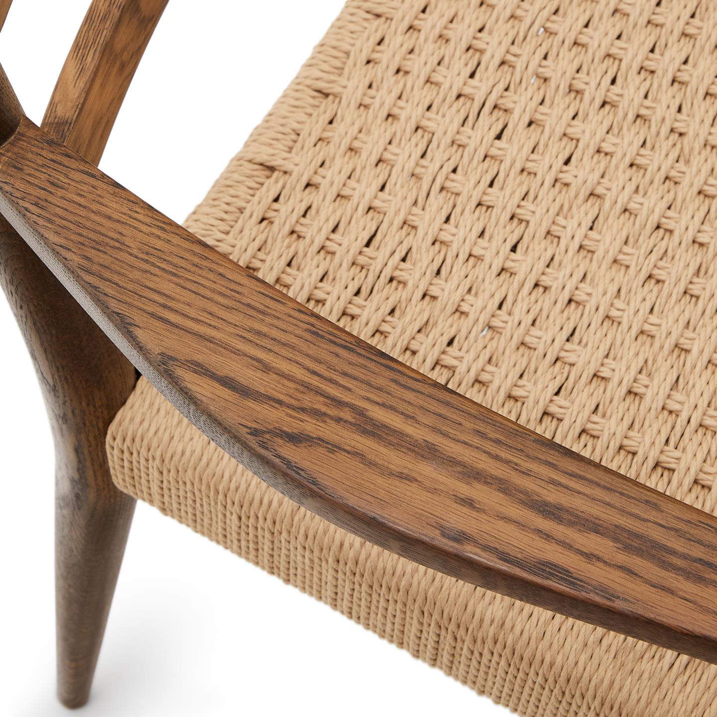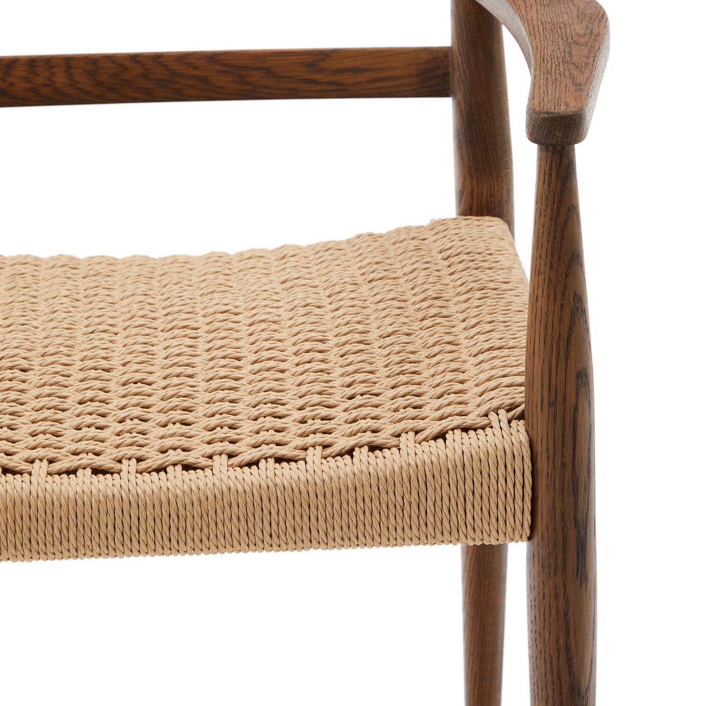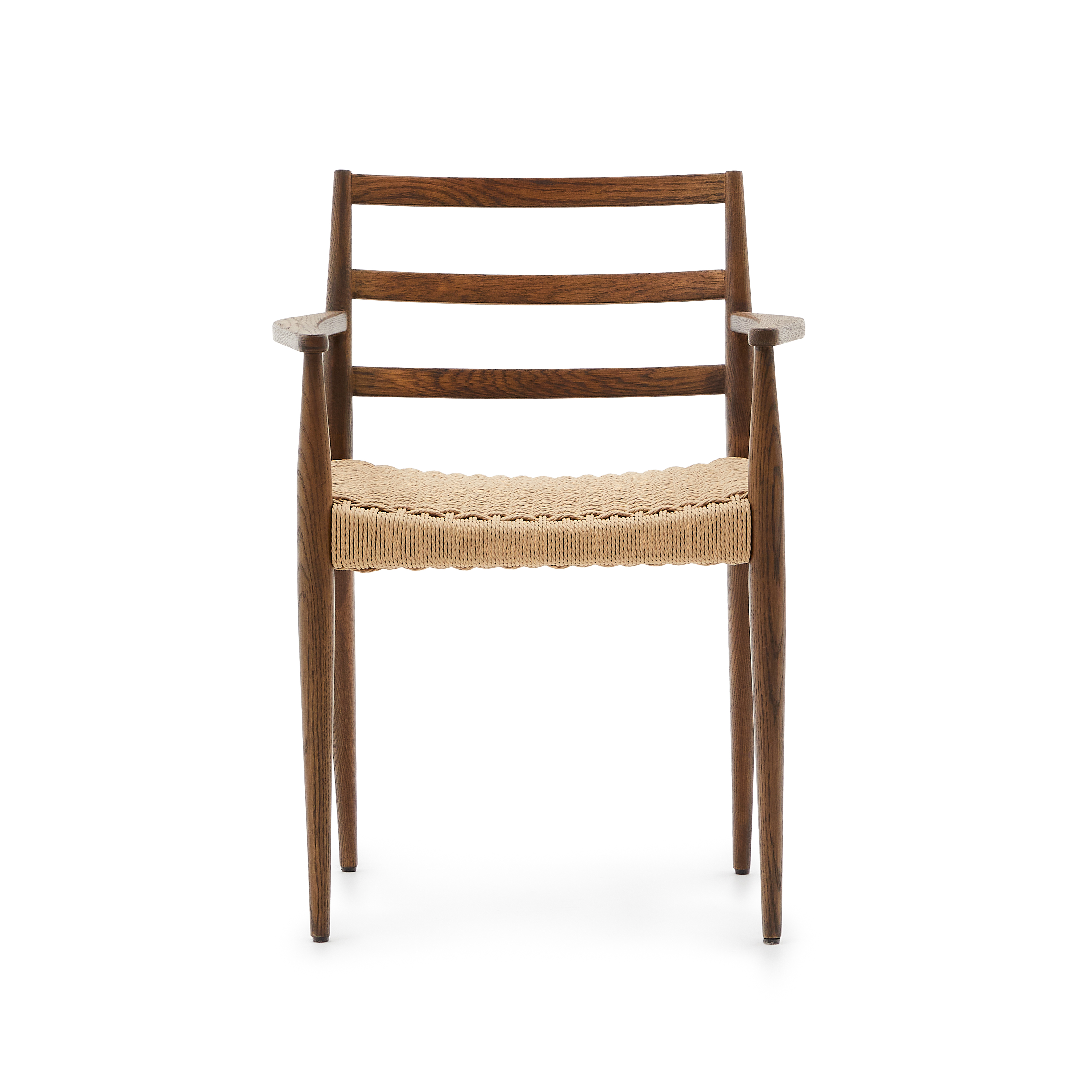 Židle Analy s područkami z masivního dubu s ořechovou povrchovou úpravou a lanovým sedákem