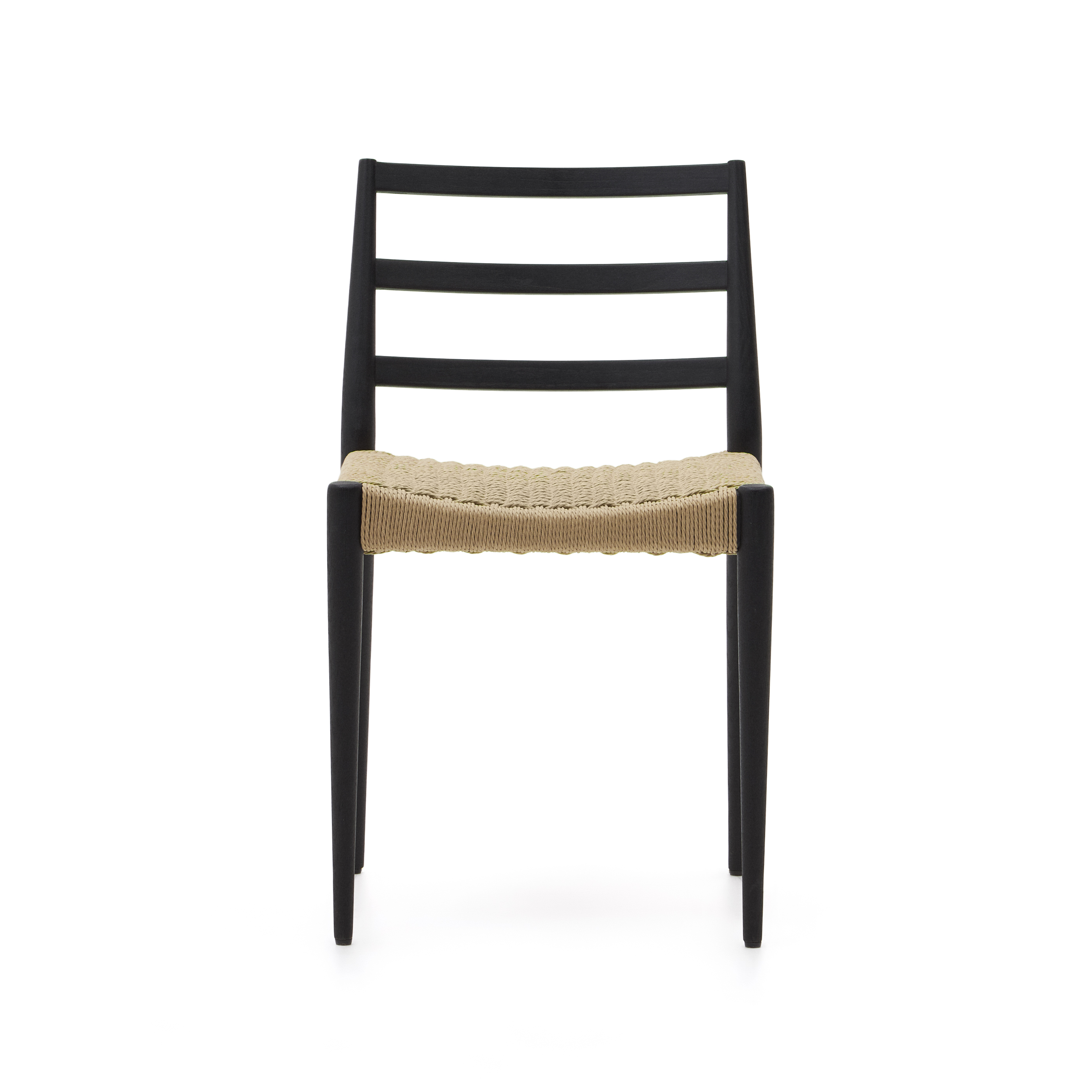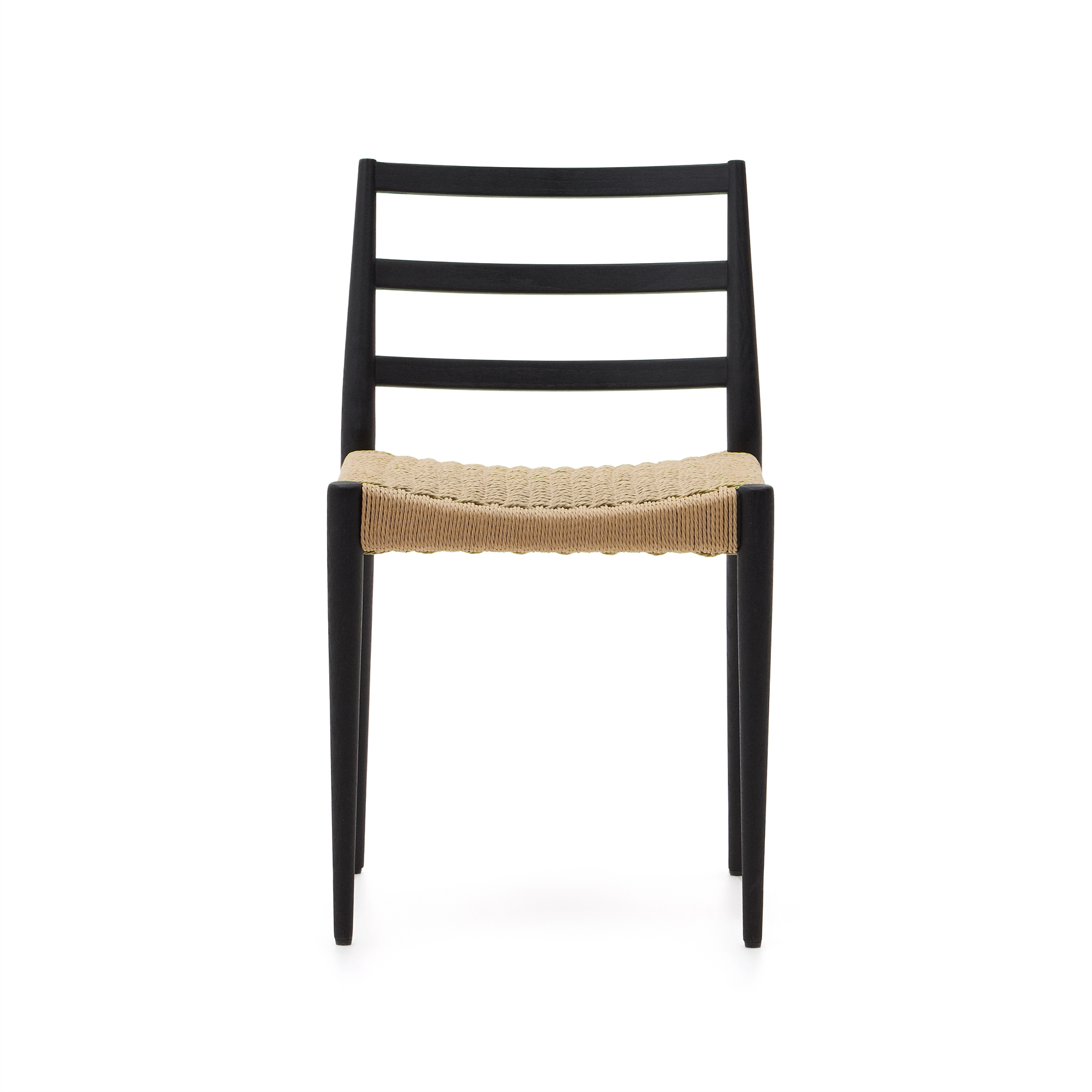 Židle Analy z masivního dubového dřeva s černou povrchovou úpravou a sedákem z 100% lana FSC