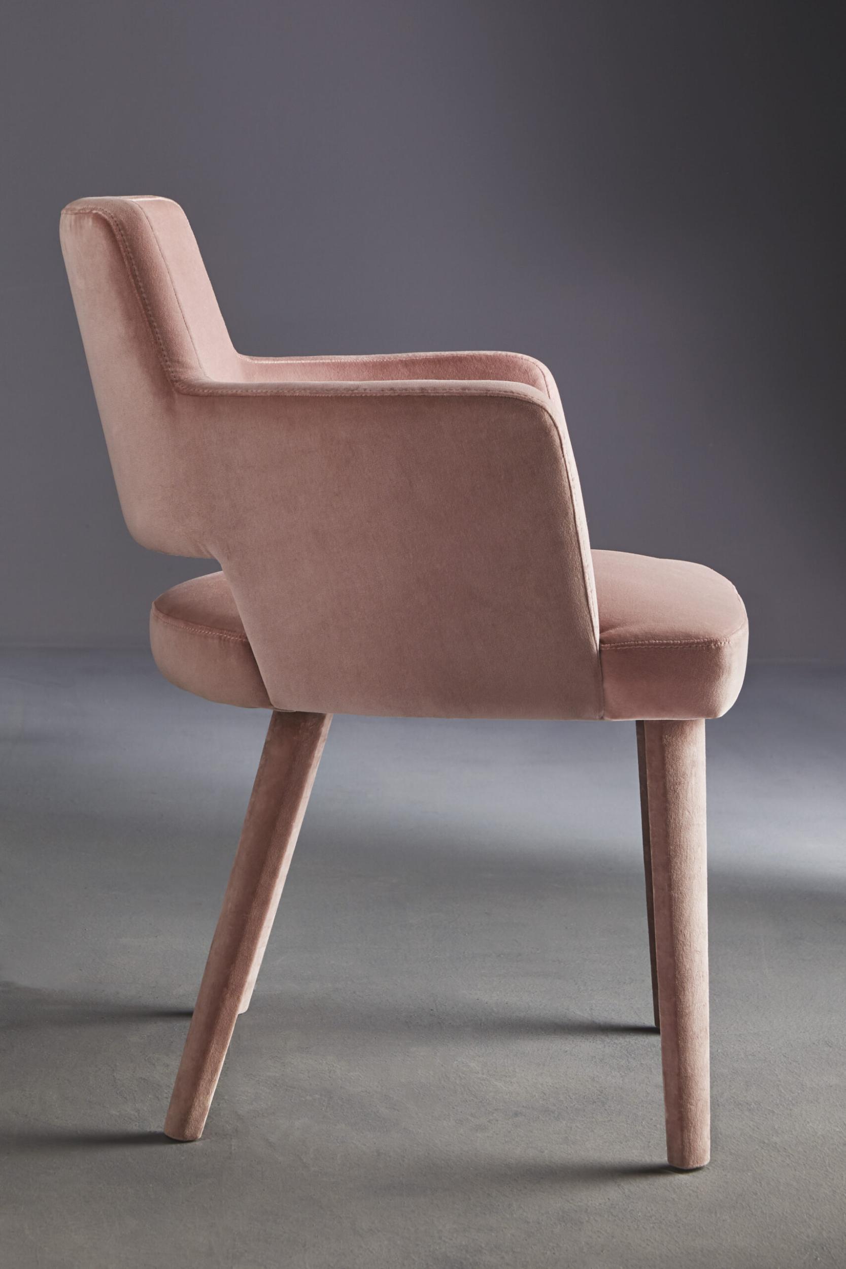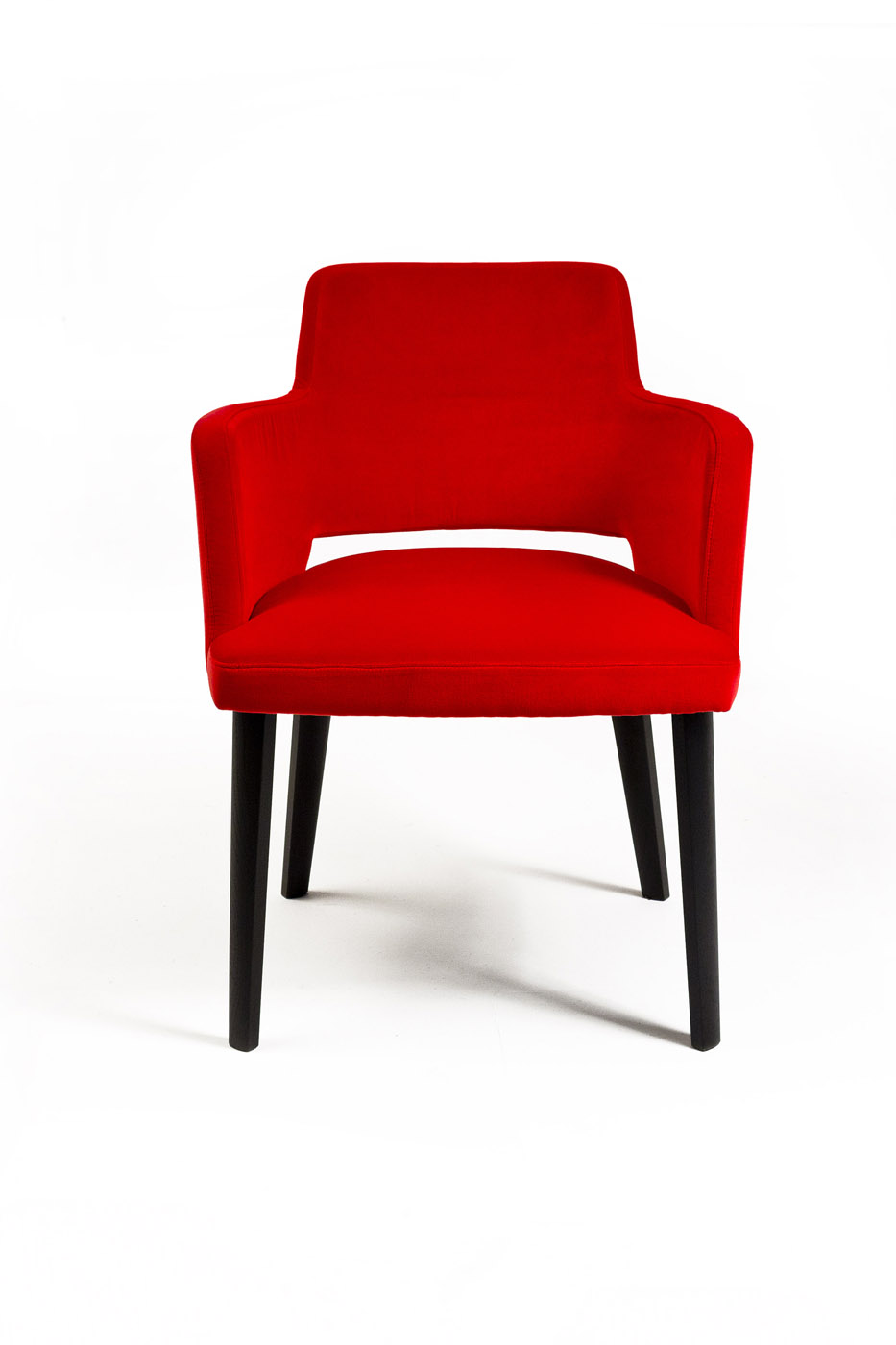 Křeslo s dubovým rámem, polstrované a čalouněné látkou nebo kůží.
