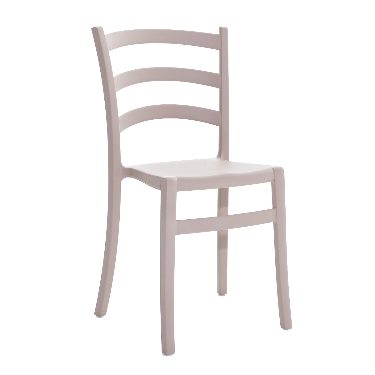 Stohovatelná židle z měkkého polypropylenu, recyklovatelná a vhodná pro venkovní použití.