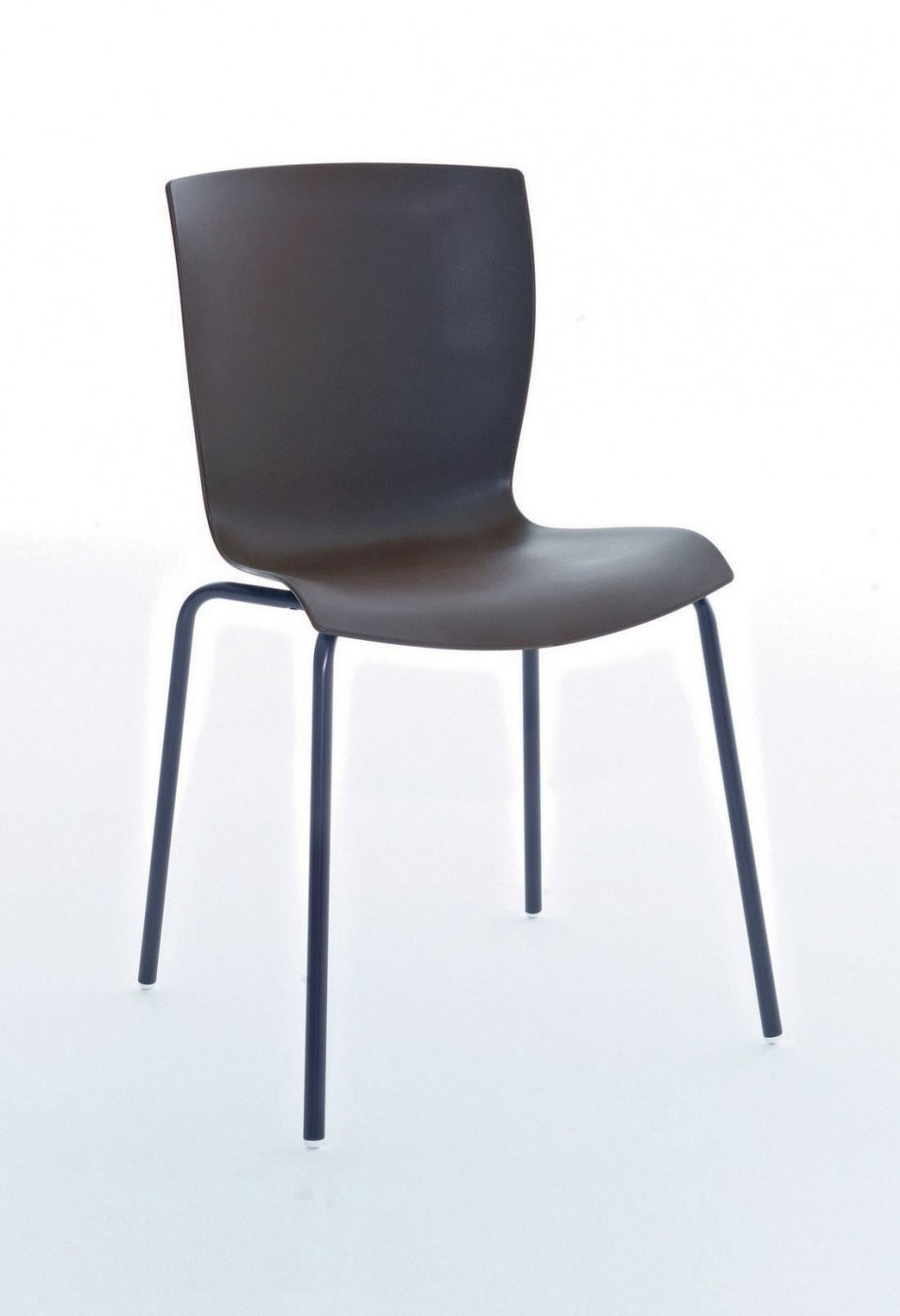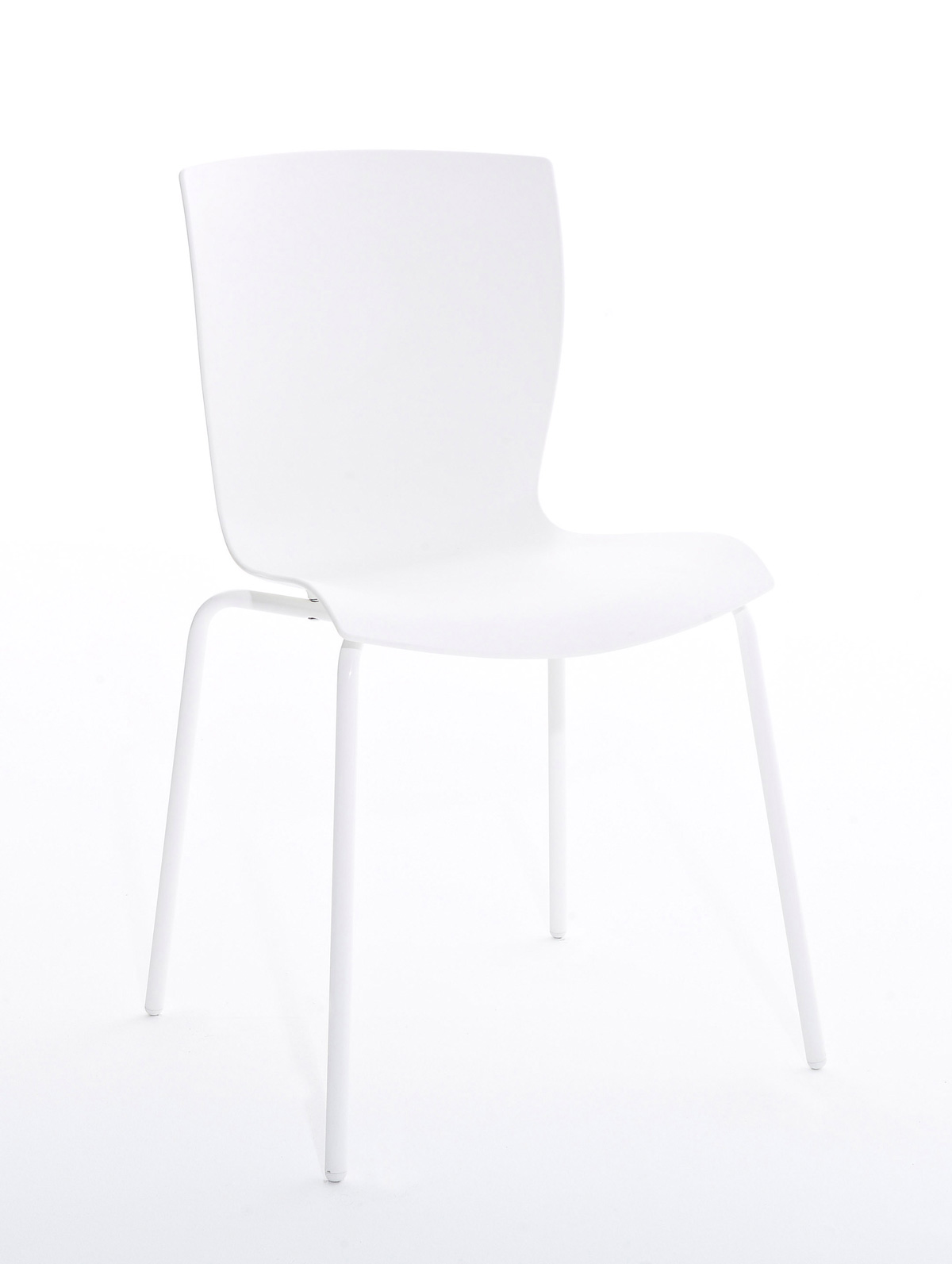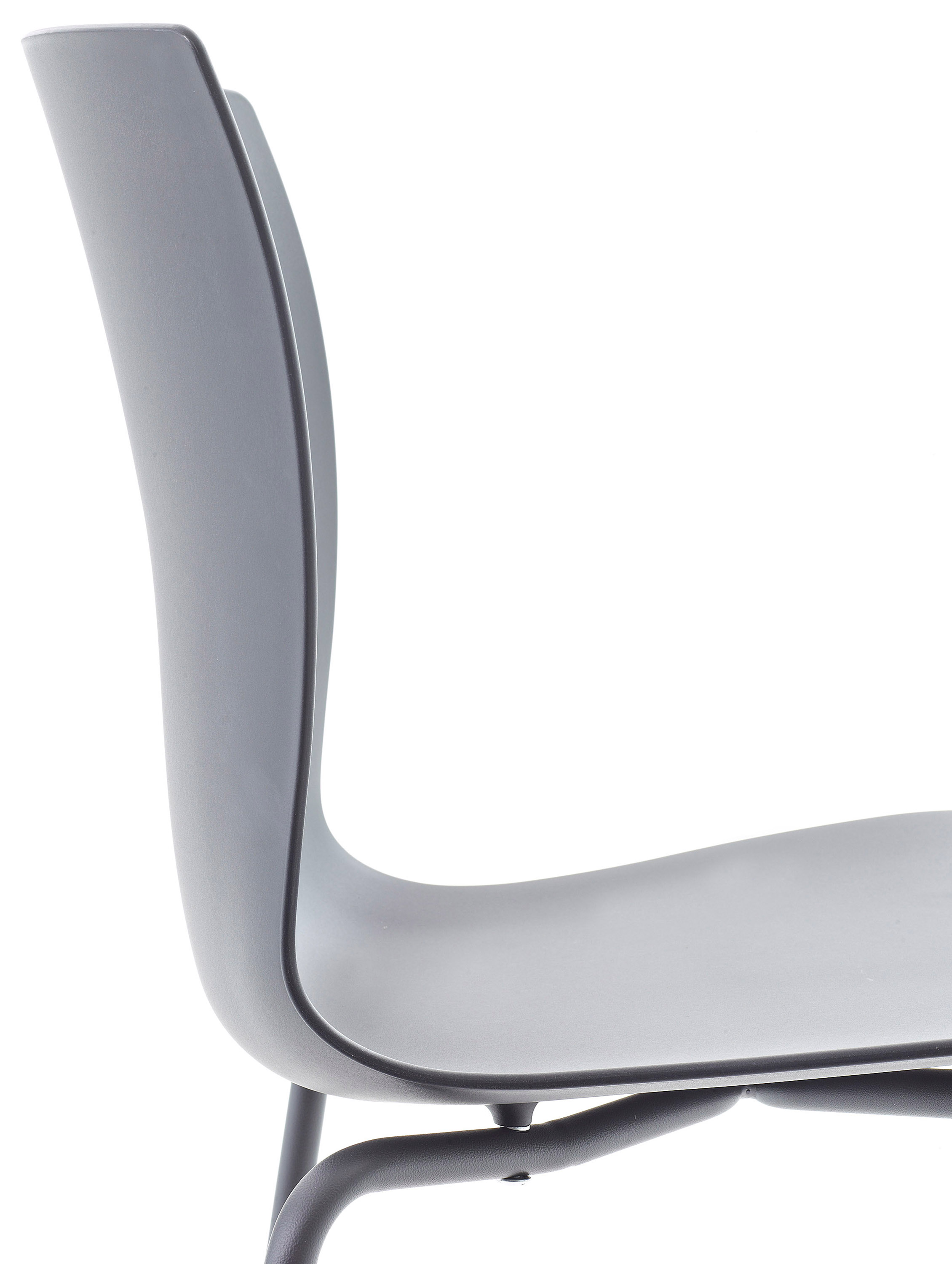 Stohovatelná židle s ocelovým rámem a sedákem z polypropylenu s dotykovou obrazovkou.