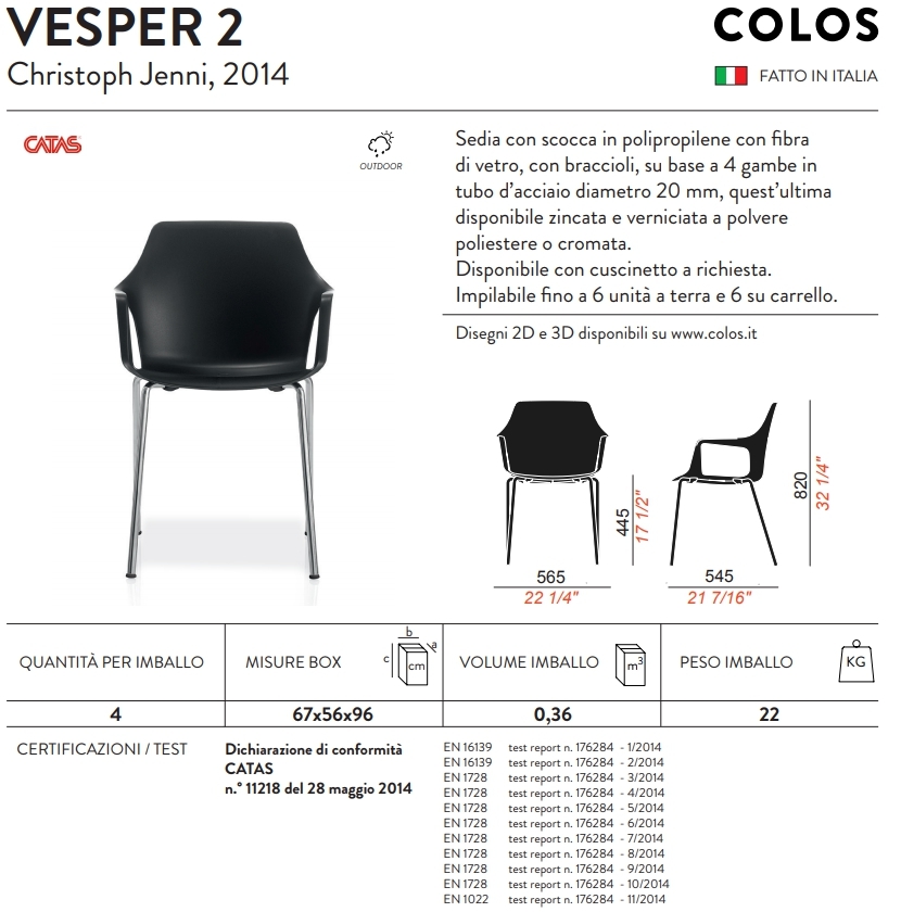VESPER je řada produktů složená ze židlí, křesel a taburetek, jejichž skořepiny jsou vyrobeny z polypropylenu plněného skelnými vlákny a rám je z kovu.