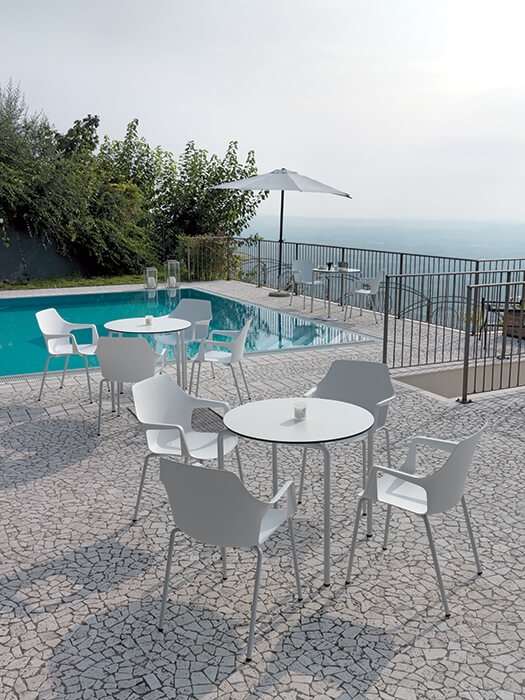 Jsou stohovatelné a vhodné jak pro vnitřní prostory v chromované verzi, tak pro venkovní prostory v lakované verzi. Koncept spočívá v nabídnutí kolekce produktů záměrně omezené na několik modelů, zaměřené na restaurační sektor, ale i mimo něj, a to díky všestrannosti, kterou nabízí základní design a řada barevných kombinací skořepiny/rámu.