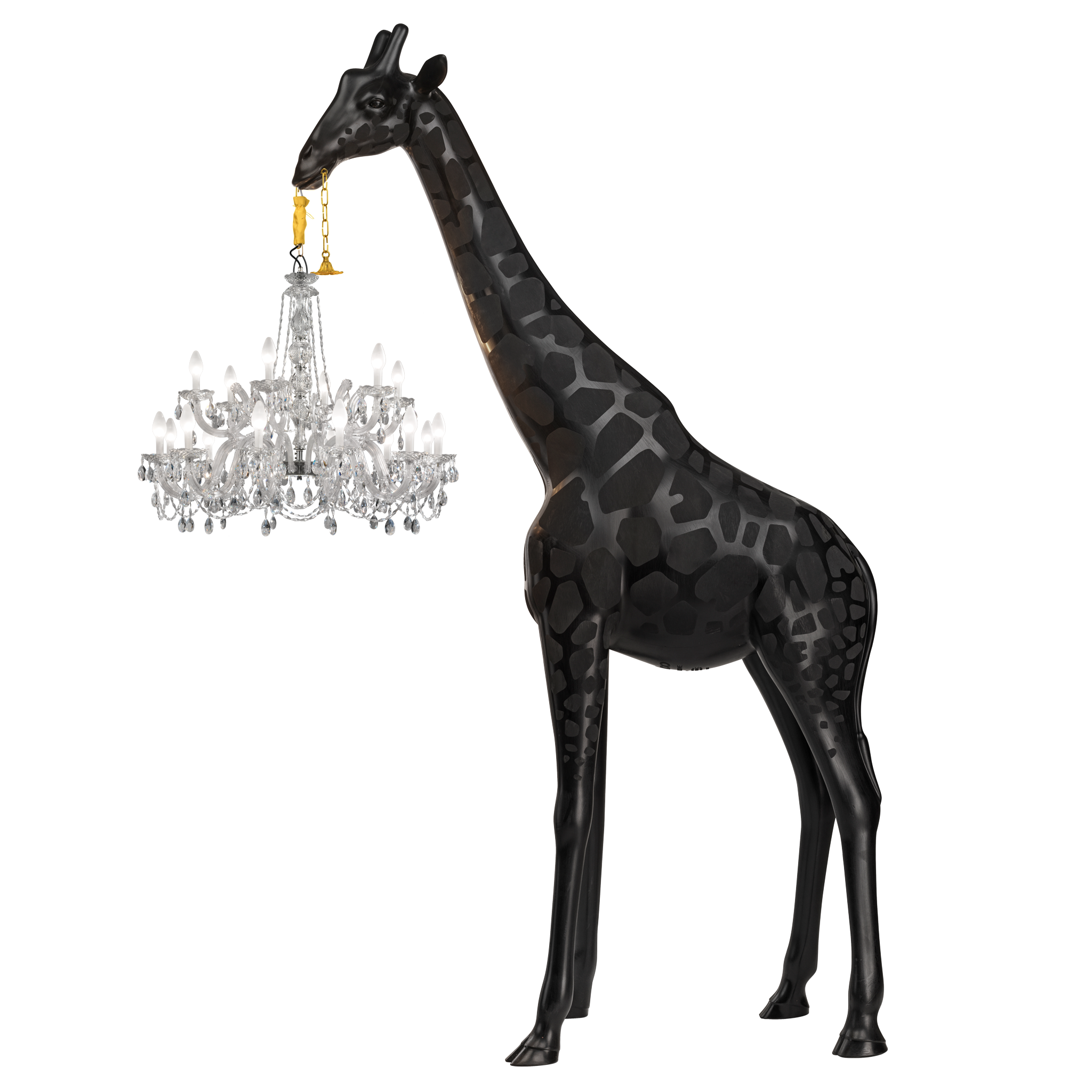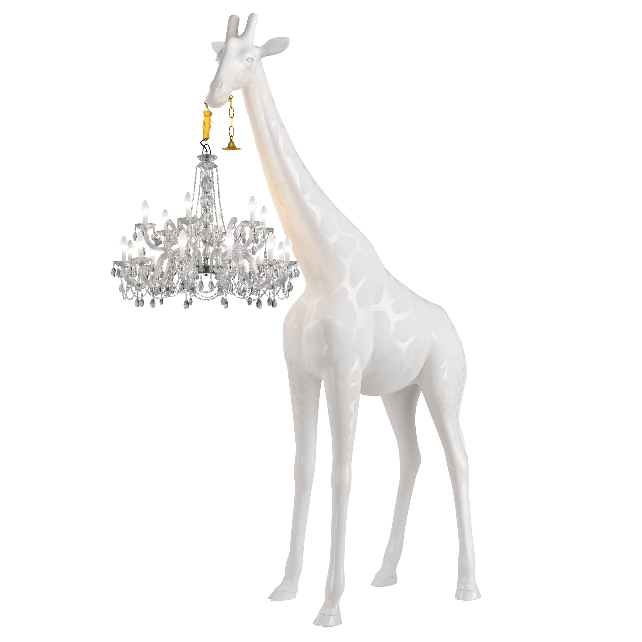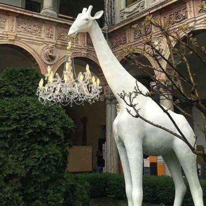 Láska dohání lidi k šílenství, to ví každý. Ale co se stane, když Amorův šíp zasáhne čtyřmetrovou žirafu? Marcantoniovy vizionářské skici na to reagovaly vytvořením Zamilované žirafy, snové žirafy držící klasický lustr ve stylu Marie-Thérèse. Zamilovaná žirafa v interiéru je žirafa o velikosti skutečného mláděte žirafy, vhodná pouze pro vnitřní použití.