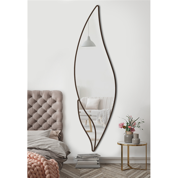 Stylizované zrcadlo ve tvaru listu se dvěma zrcadly. Lakovaná povrchová úprava.