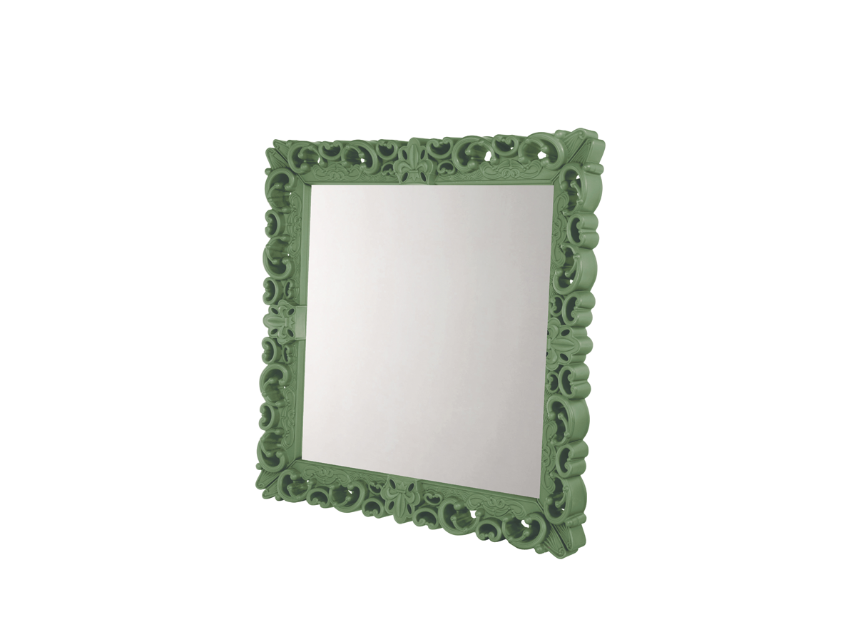 Zrcadlo lásky – L je velmi unikátní dílo s působivými rozměry a propracovanými detaily v rokokovém stylu, které z něj činí skutečný poutač pozornosti. Jeho impozantní rozměry o rozměrech 162 cm x 162 cm umožňují, aby se Zrcadlo lásky stalo ústředním bodem velkých sálů, výstav a galerií, a dokonale se začleňuje do filozofie makrodesignu, kterou nedávno představila společnost SLIDE.