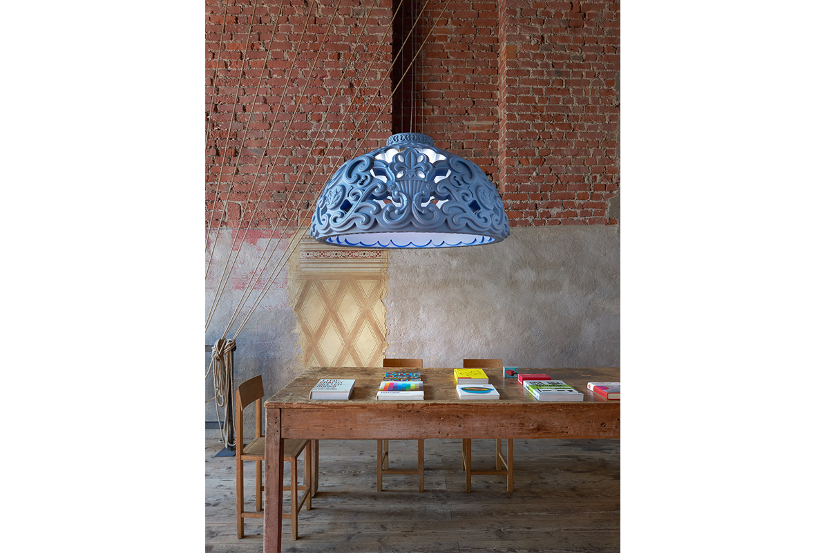 DAME OF LOVE è la lampada a sospensione che rientra, per stile e ricchezza dei dettagli, nella collezione Design Of Love, nata dalla collaborazione tra i designer Moro e Pigatti e la lavorazione dello stampaggio rotazionale tipico di tutta la produzione SLIDE.