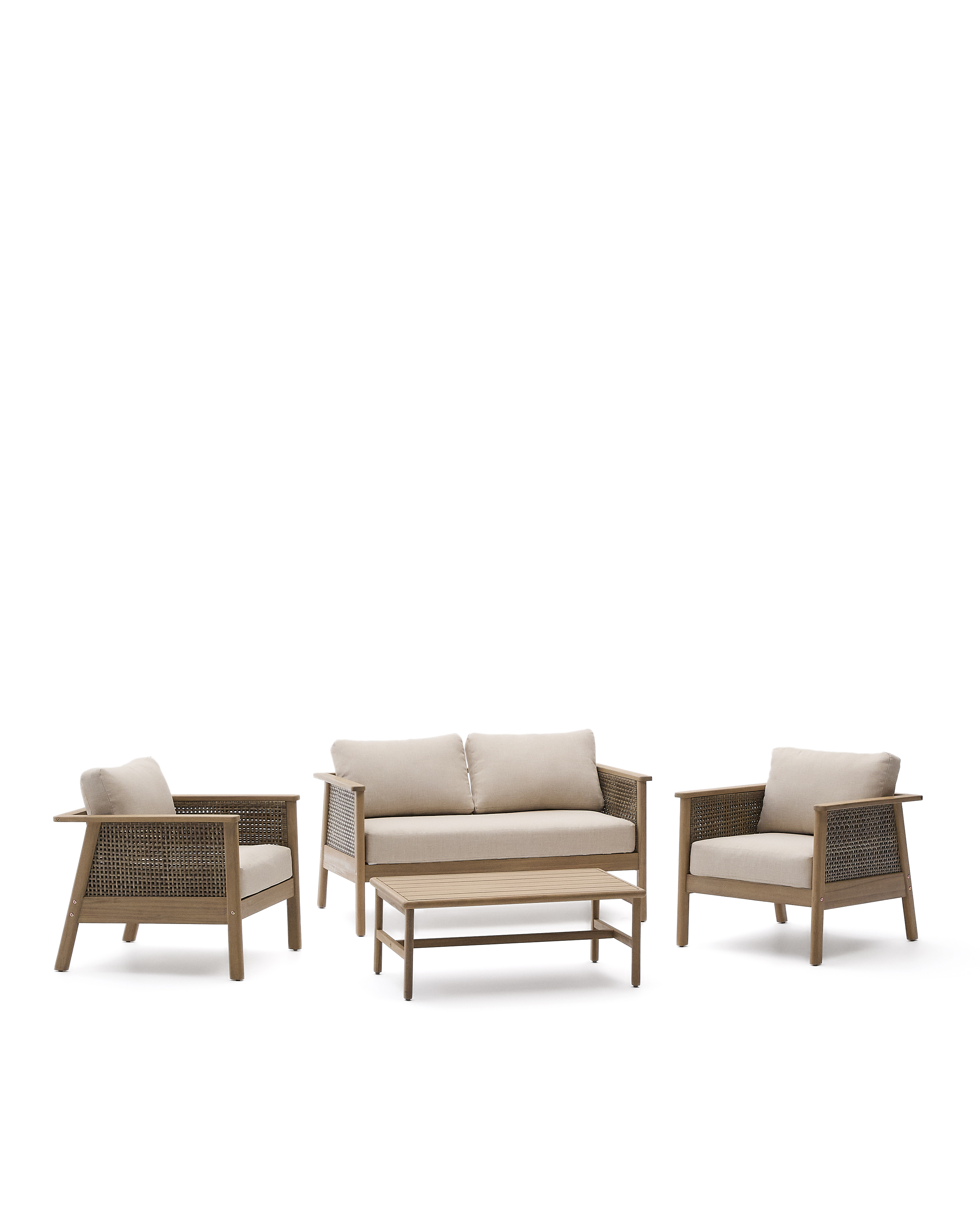 | Materiale | 70% akacietræ (Acacia Mangium), 15% syntetisk flet, 8% skum (polyurethan), 5% stof, 2% rem |