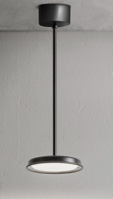 Pendelversionen er monteret på et stift rør, mens loftversionen også fås med skjult tilbehør til montering på gipsplader.