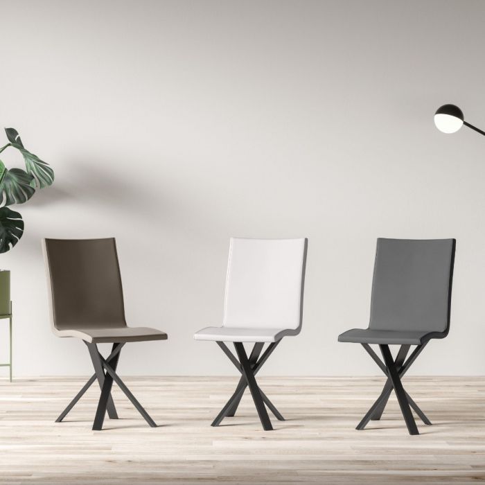Aury Soft stol med antracitlakerede metalben og en træskal betrukket med let polstret kunstlæder. Denne stol er uden armlæn.