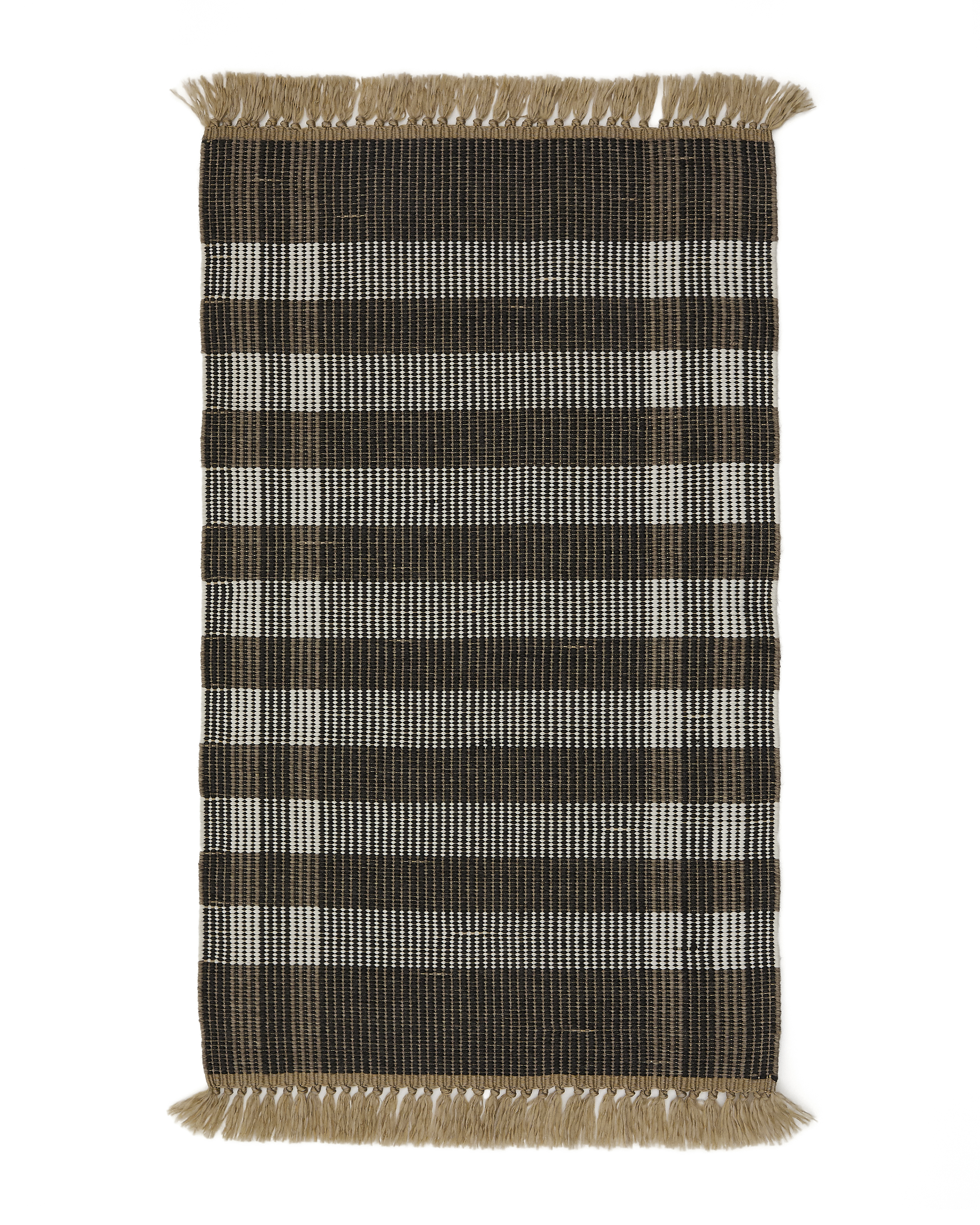 Dette håndvævede tæppe med et vendbart ternet design kombinerer stil og funktionalitet i en alsidig dekorativ løsning. Det ternede mønster tilføjer dynamik og karakter og skaber en perfekt balance mellem klassisk elegance og modernitet. Takket være det dobbeltsidede design kan du opdatere stilen i dit rum med en simpel gestus og nemt tilpasse det til forskellige behov og dekorative sammenhænge. Hvert tæppe er håndlavet med stor omhu, hvilket gør hvert stykke unikt med subtile variationer, der forbedrer dets autenticitet og håndværksmæssige værdi. Disse detaljer giver produktet en karakteristisk personlighed, hvilket gør det til et eksklusivt og originalt valg. Dette tæppe er lavet af meget modstandsdygtige syntetiske fibre og tilbyder adskillige praktiske fordele: det er ekstremt holdbart, let at vedligeholde og modstandsdygtigt over for ekstreme temperaturer, hvilket gør det perfekt til både indendørs og udendørs rum. Rengøring er hurtig og nem og ideel til dem, der søger praktisk anvendelighed i deres dagligdag. Tæppet fås i en elegant sort farve og passer perfekt ind i ethvert rum, fra moderne og minimalistisk til mere sobert og raffineret. Dets neutrale tone gør det nemt at matche med møbler, tekstiler og tilbehør, hvilket gør det til den ideelle base for at skabe rum med en stærk karakter. Udover at berige rummet med stil, tilføjer det varme og komfort, hvilket gør ethvert rum mere imødekommende og indbydende.