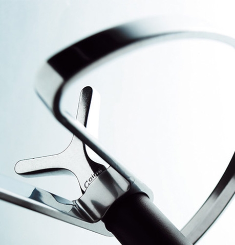 Paraplystativring lavet af poleret trykstøbt aluminium, komplet med et håndtag også lavet af poleret trykstøbt aluminium, samlet på opretstående enhed med M8 galvaniserede stålskruer.