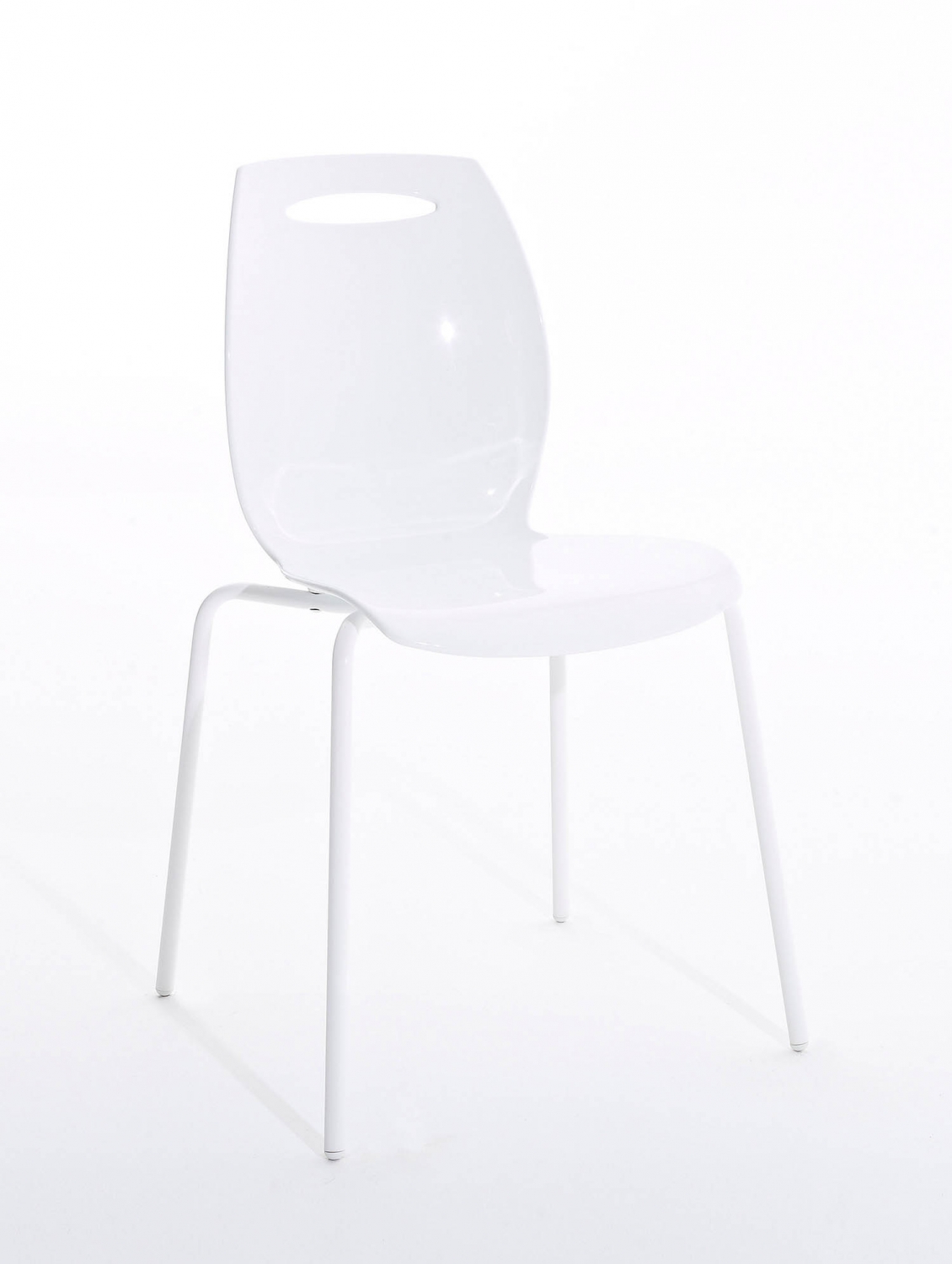 Stabelbar stol med stålstel og sæde i komposit technopolymer.