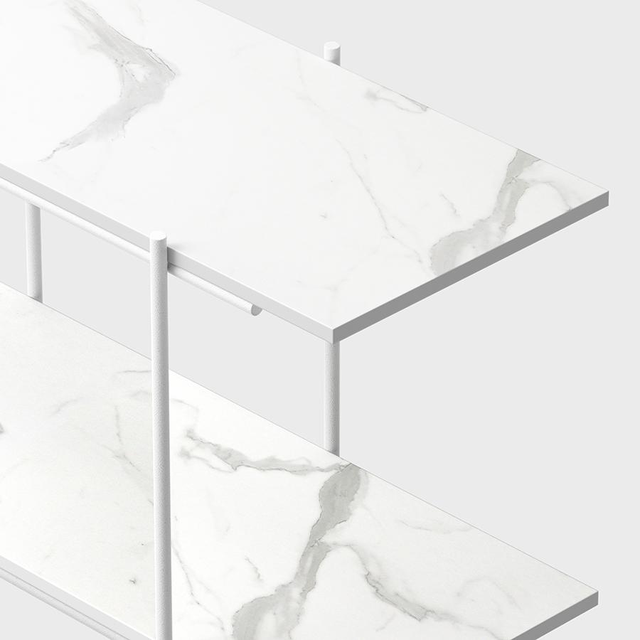 Biplano sofabord med et let og minimalistisk design, med en bærende struktur i massivt rundt stål.