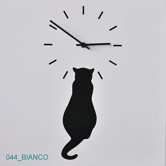 Vægur lakeret MDF Farver: Sort med hvid kat – Hvid med sort kat Mål: L 38,5 x H 38,5 cm designet af Gianluca Minchillo